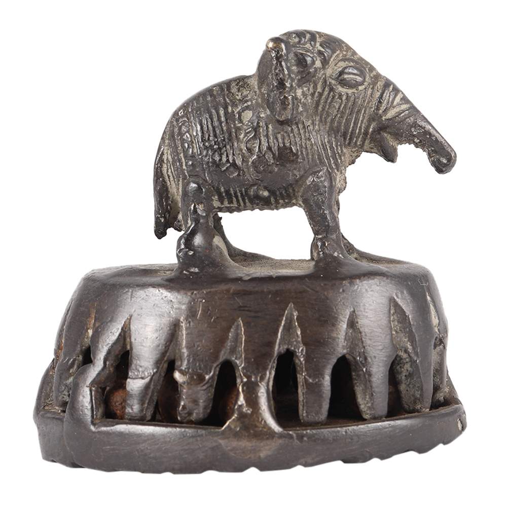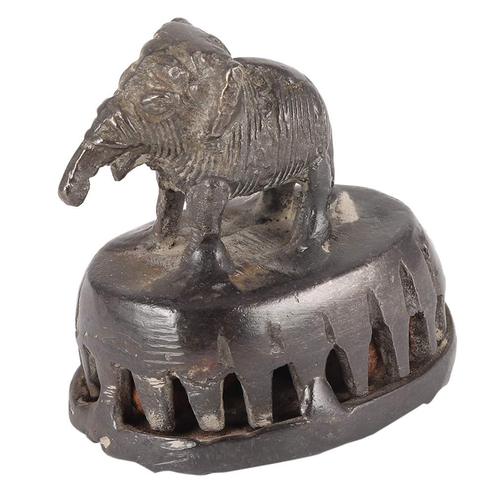 This was usually used among women when bathing to wash their foot, which was driven primarily by being barefoot. It really is made of cast brass and consists of a platform with punctured mesh work and a rustic, chipped base with an ornamental cast figure usually an animal  that serves as a handle. Tiny stones or metallic pellets are placed within the pedestal, which produces a noise when it is used to alert others in the area that women are bathing around.