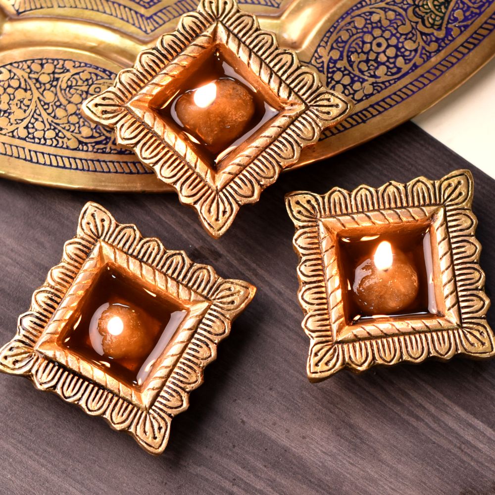 Add a touch of tradition and artistry to your celebrations with this Brass Engraved Square Oil Lamp Diya. Handcrafted from solid brass with a golden polished finish, it features elegant engravings that highlight India’s rich cultural heritage. Compact yet detailed, this diya is ideal for mandir rituals, Diwali lighting, and auspicious home décor.
