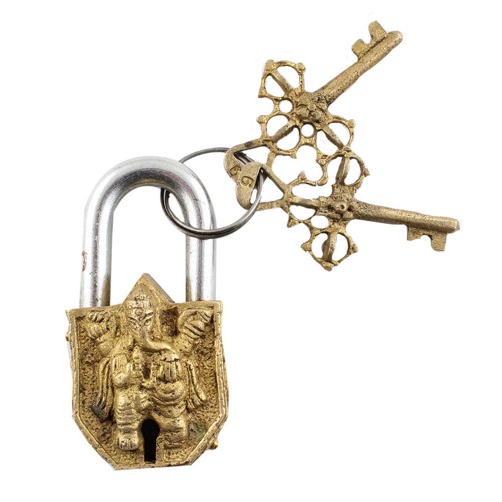 Brass Engraving Ganesha Idol Sculpture Pad Lock With Keys in Pair makes it an exclusive decorative product to add an antique look to your home, office, school ,hotels, gym, clubs, restaurant doors. Wedding gift, birthday gift and souvenir.