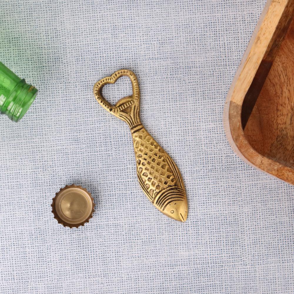Crafted from durable brass and designed with timeless appeal, this fish-shaped bottle opener will continue to be a stylish and functional piece in your home for years to come. Its unique design ensures it remains a standout item, adding charm to your kitchen or bar space.