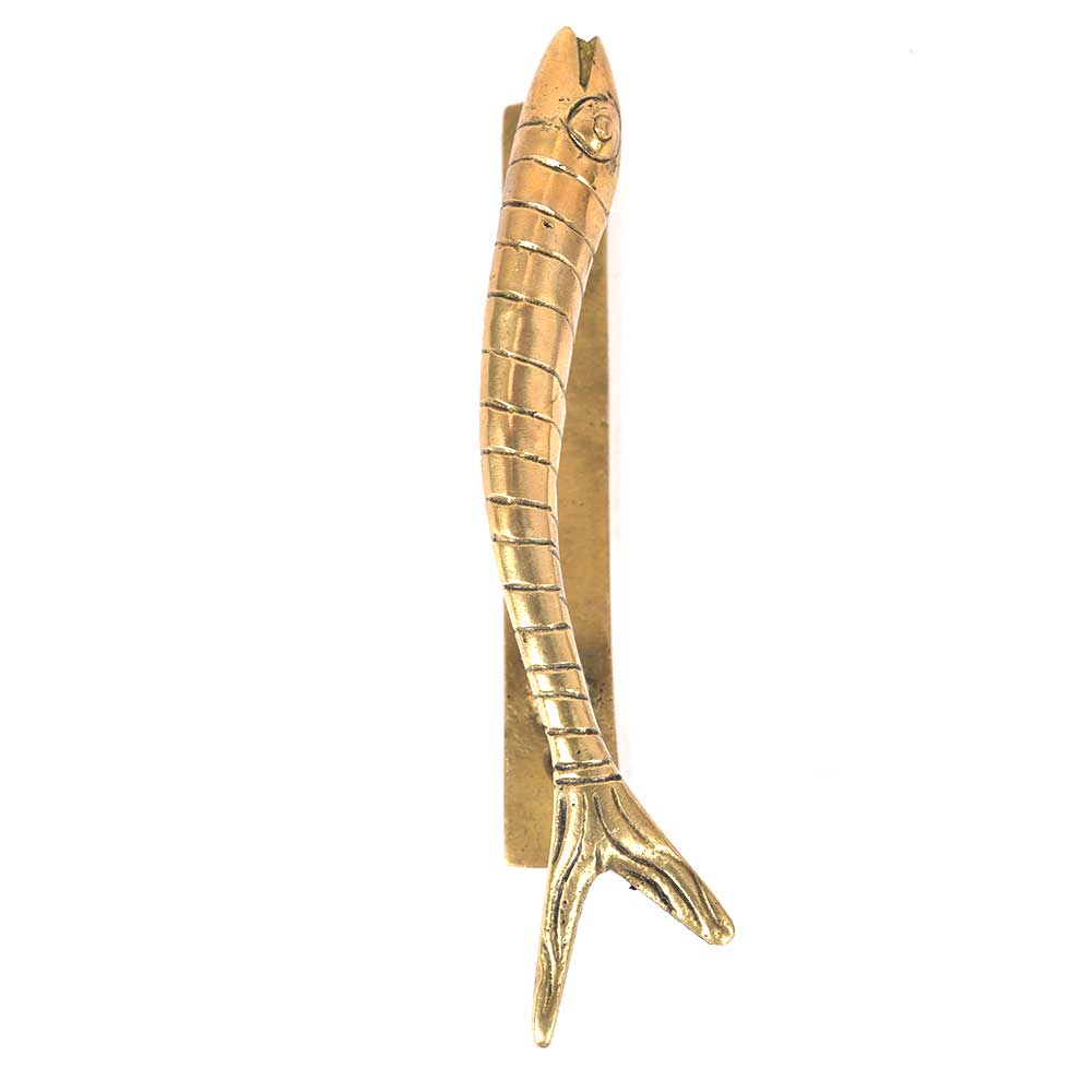 The fish handle is made of brass with the help of skilled artisans of India. Fish's mouth is opened and it has scales made beautifully. This hardware is provided to fasten the pull.