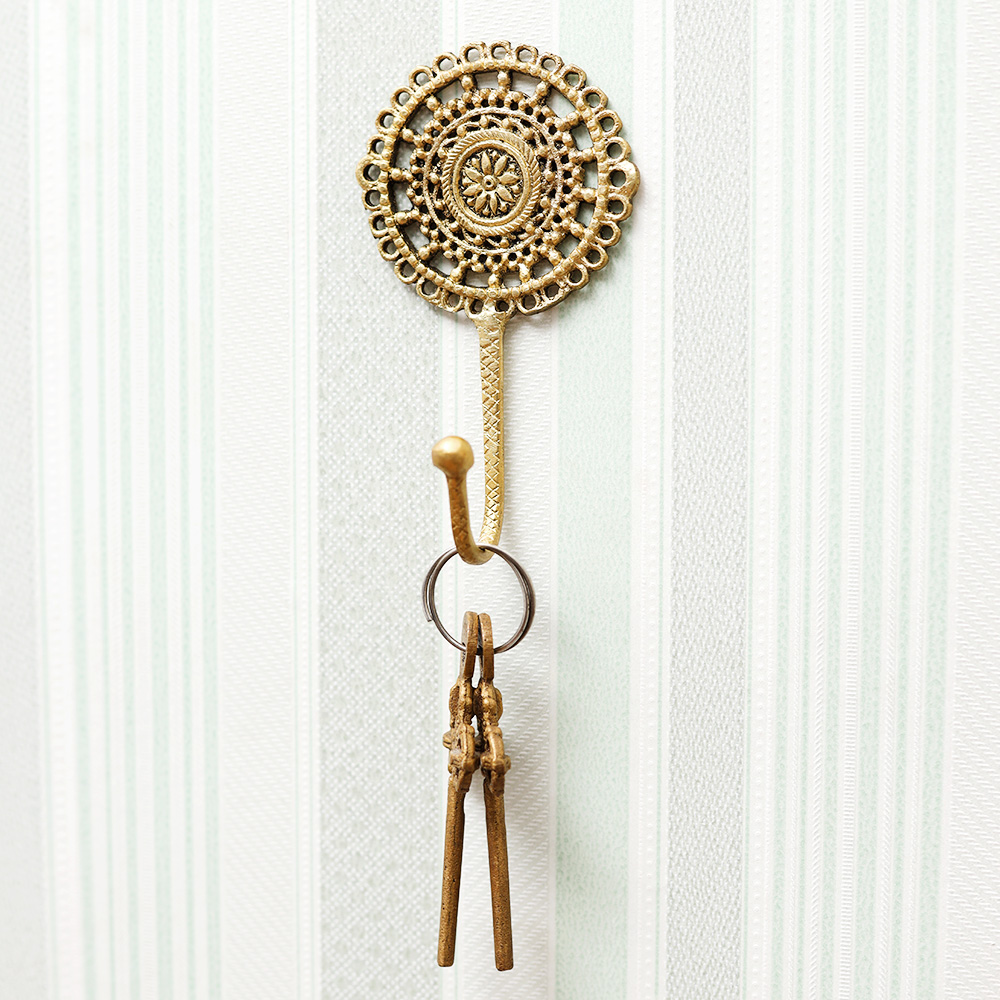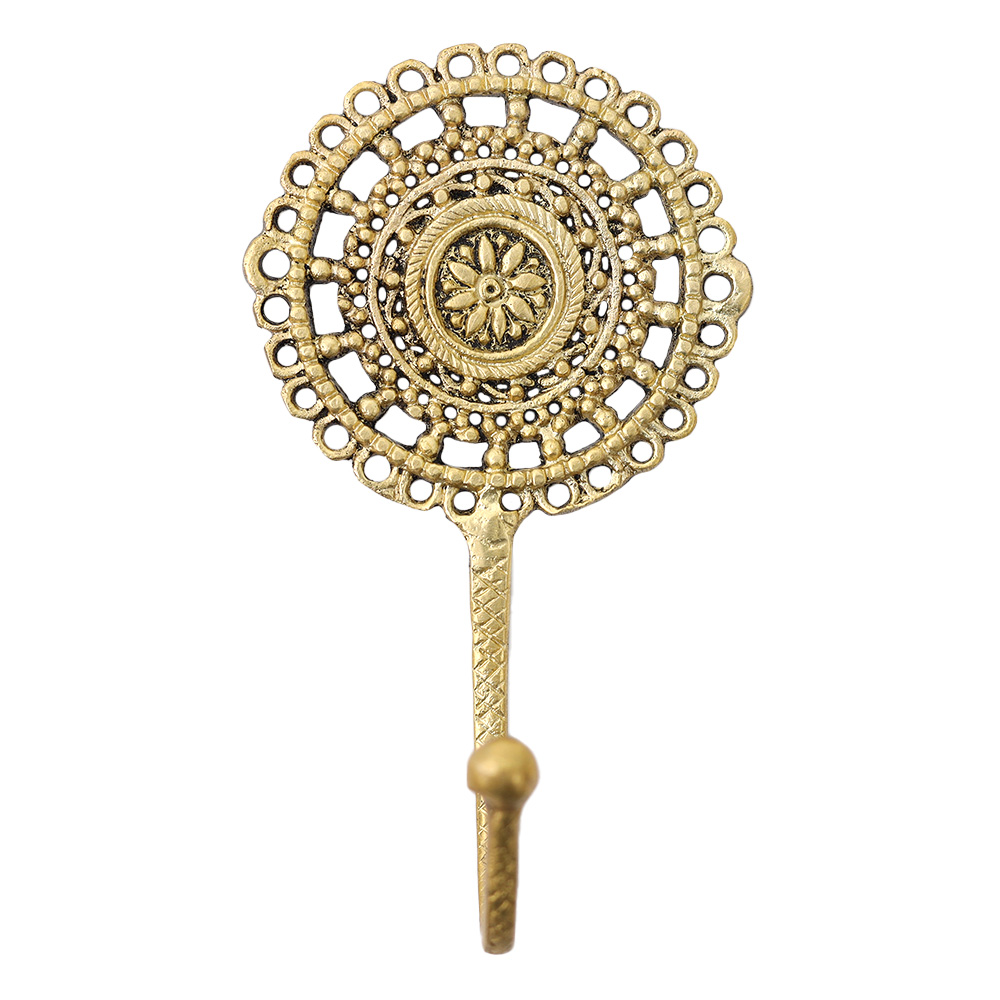 The Brass French Cutwork Round Single Hook isn't just a functional piece; it's an artistic accent for your home. Use it to add a touch of vintage appeal to your hallway, bathroom, or bedroom.