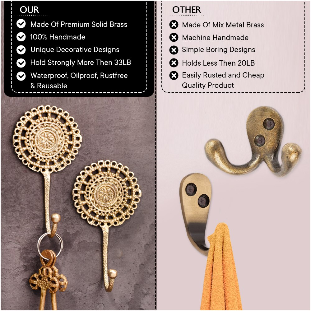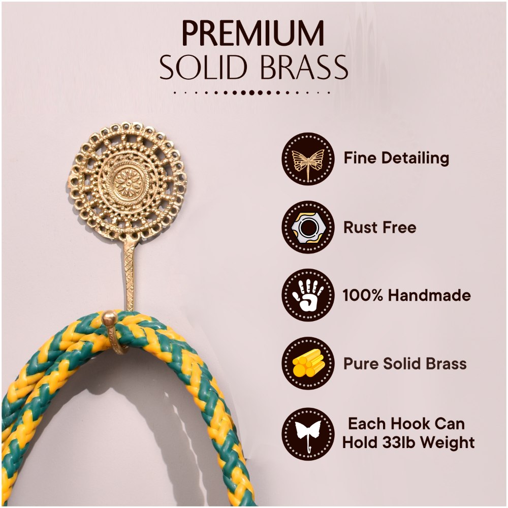 This hook is made from high-quality brass with a polished finish, making it both attractive and long-lasting. Its gleaming surface brings out the fine details of the French cutwork, elevating the aesthetic of your home.