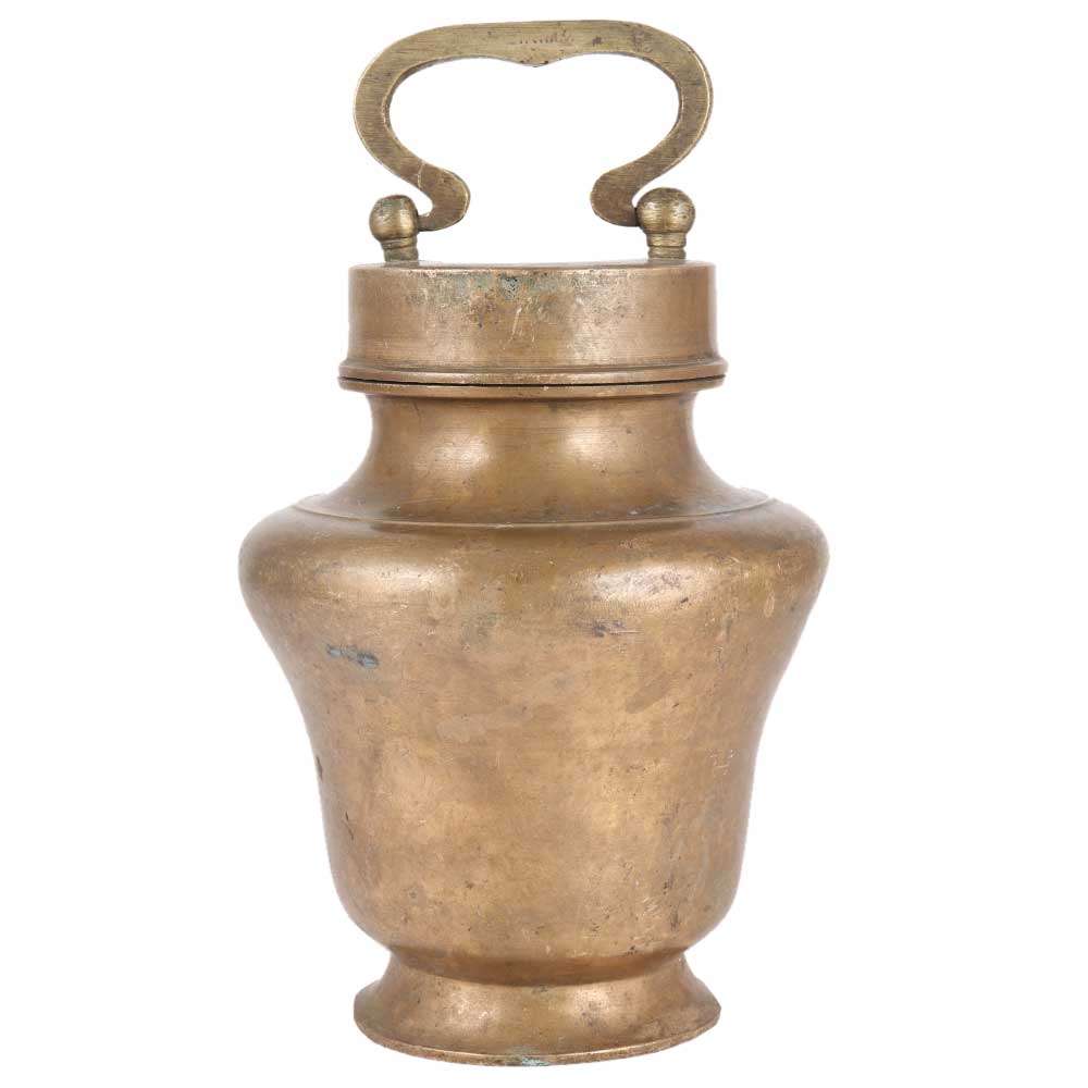 This solid kamandal or gangajali pot has a handle for easy picking up. The handmade Kamandal pot is constructed of brass and has a lovely finish. This Ganga Jali pot or Kamandal is used to hold Gangajal, Water, Grain, or other sacred liquids. It can do prayers and rituals on a regular basis.