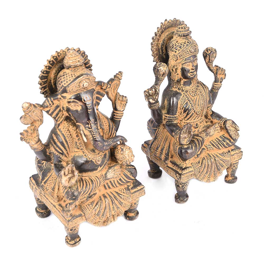 Brass Sculpture of Hindu God – Lord Ganesha and Goddess Laxmi. Keep It in Your Drawing Room as a Collectible. Enhance Your Home Decoration with These Collectibles.