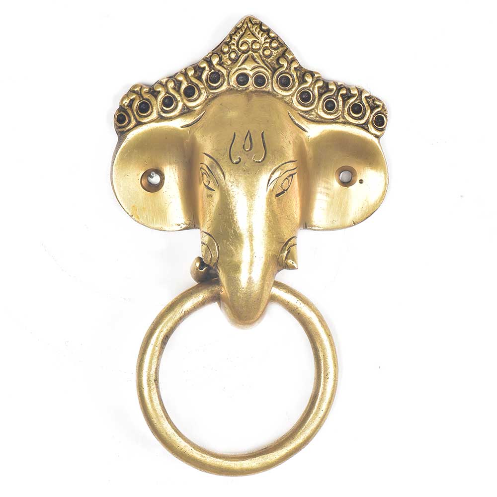 A very decorative brass door knocker with the face of Ganesha. This door knocker is solid ,heavy and very durable also used as a door pull . It gives a royal look to ordinary looking door. Also an excellent gifting option for friends and relatives.