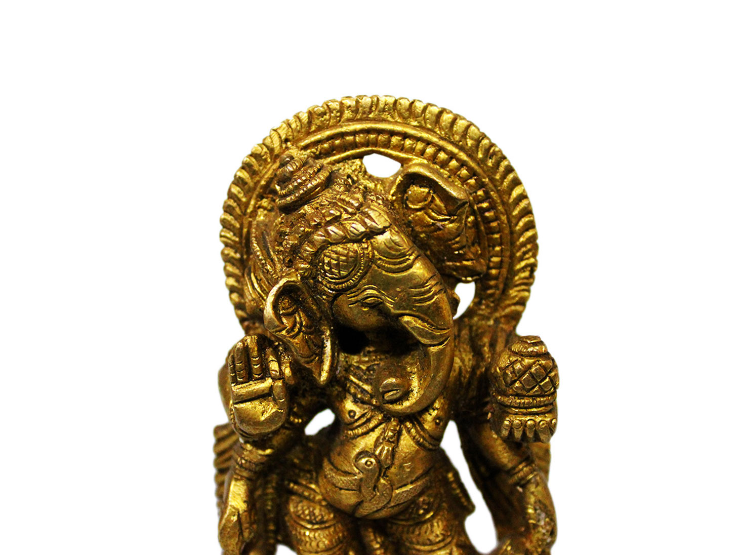 . Brass Ganesha. Finely Done to Get That Peaceful Expression on the Face. Brings Instant Peace At a Moment Glance. Fills the Atmosphere with Peace and Positive Energy. Handmade. It is More Than a Statement Piece.