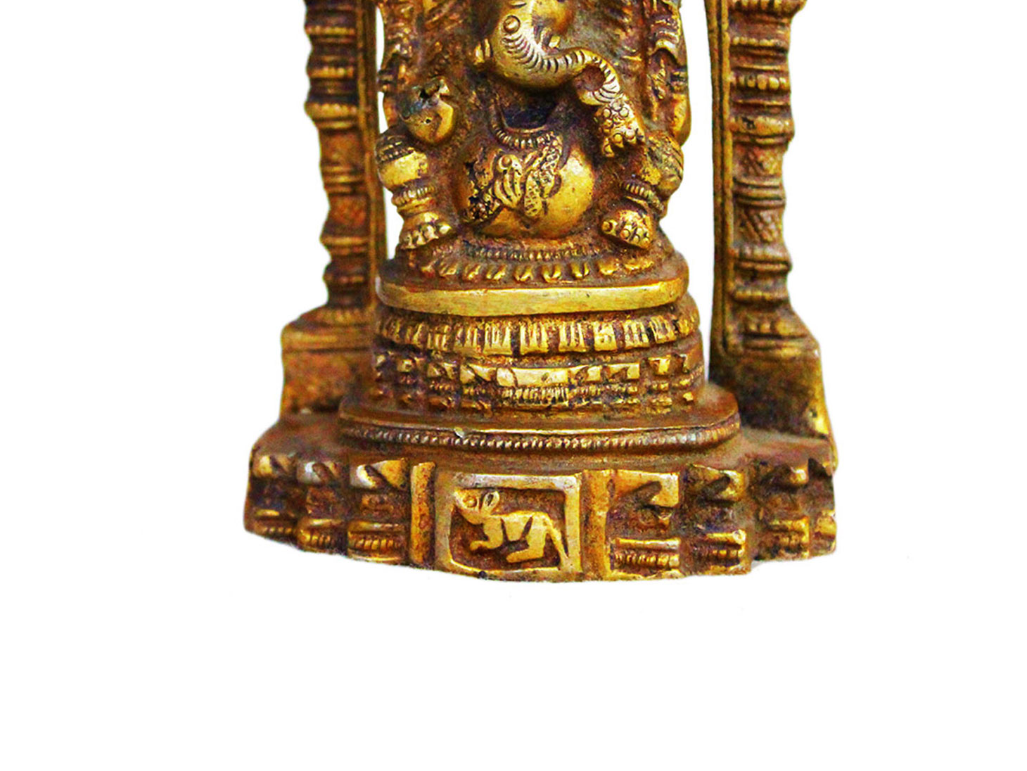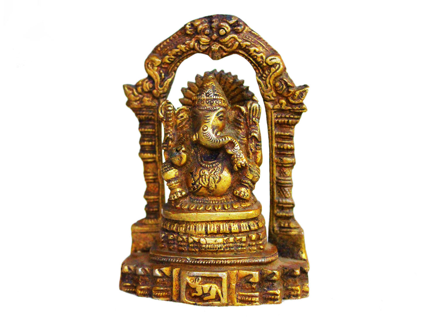 . Brass Ganesha. Finely Done to Get That Peaceful Expression on the Face. Brings Instant Peace At a Moment Glance. Fills the Atmosphere with Peace and Positive Energy. Handmade. It is More Than a Statement Piece.