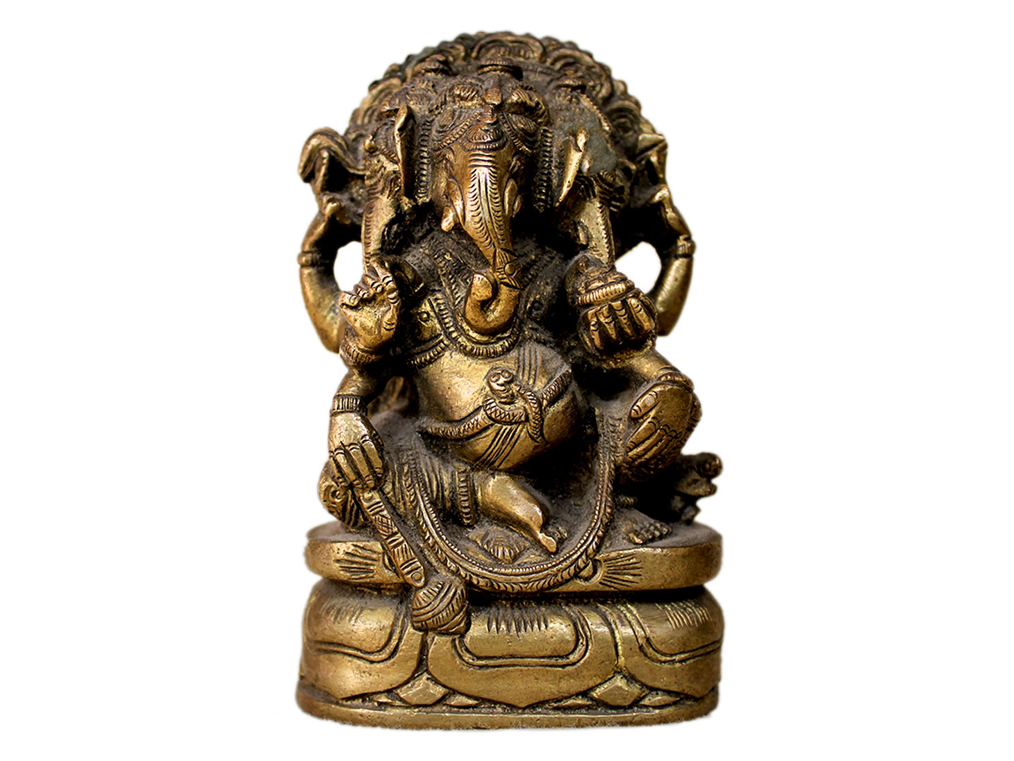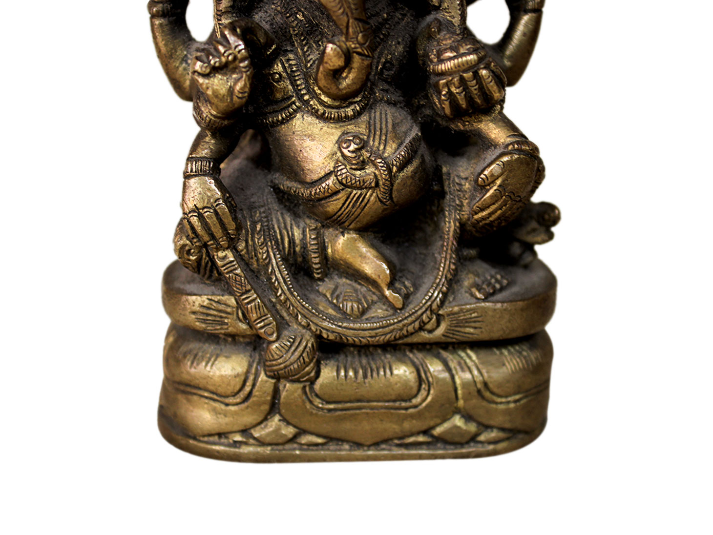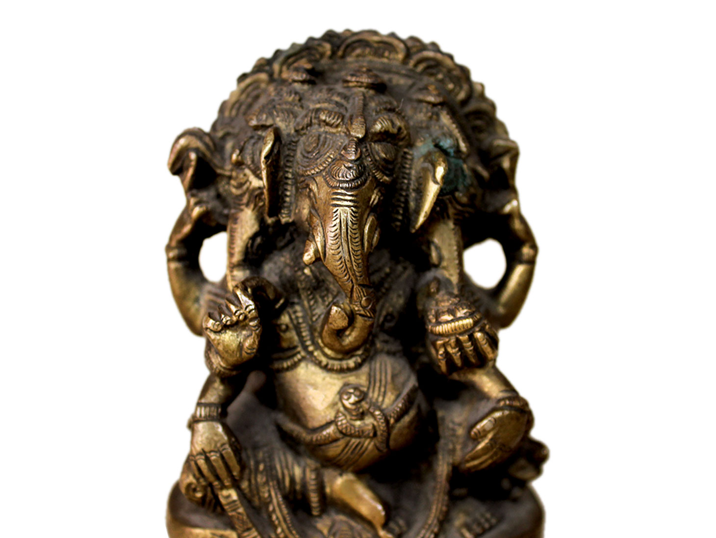 . Brass Ganesha. Finely Done to Get That Peaceful Expression on the Face. Brings Instant Peace At a Moment Glance. Fills the Atmosphere with Peace and Positive Energy. Handmade. It is More Than a Statement Piece.