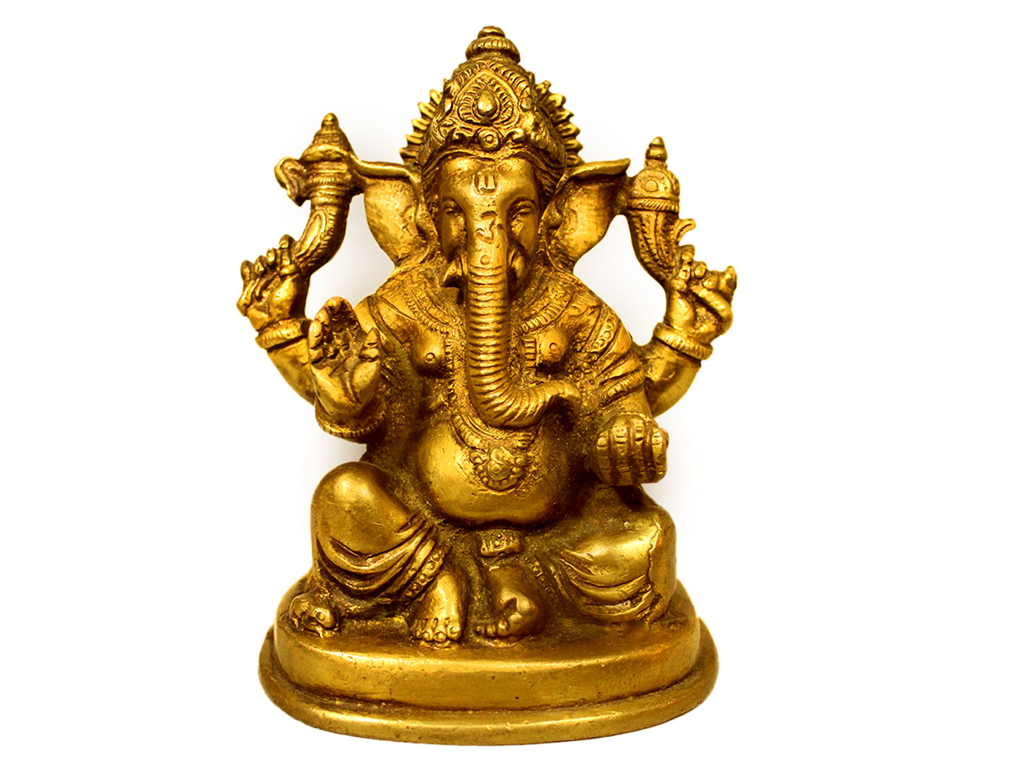 . Brass Ganesha. Finely Done to Get That Peaceful Expression on the Face. Brings Instant Peace At a Moment Glance. Fills the Atmosphere with Peace and Positive Energy. Handmade. It is More Than a Statement Piece.