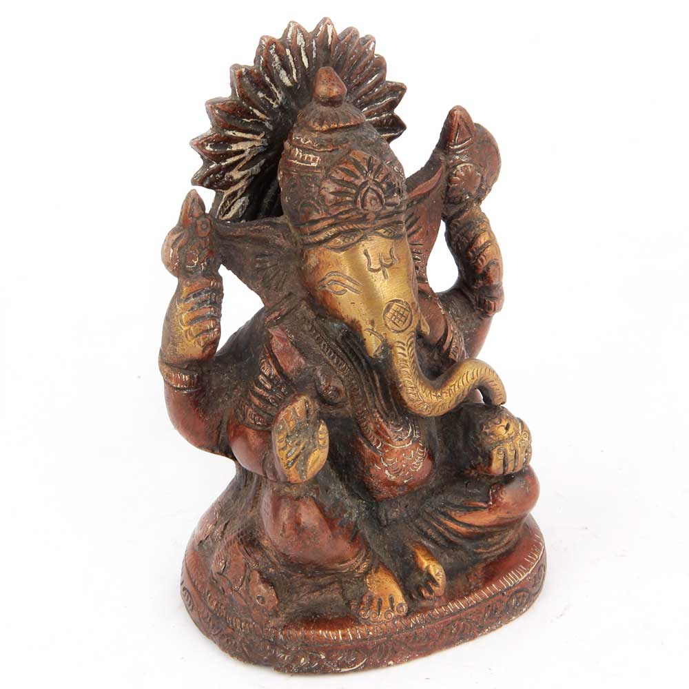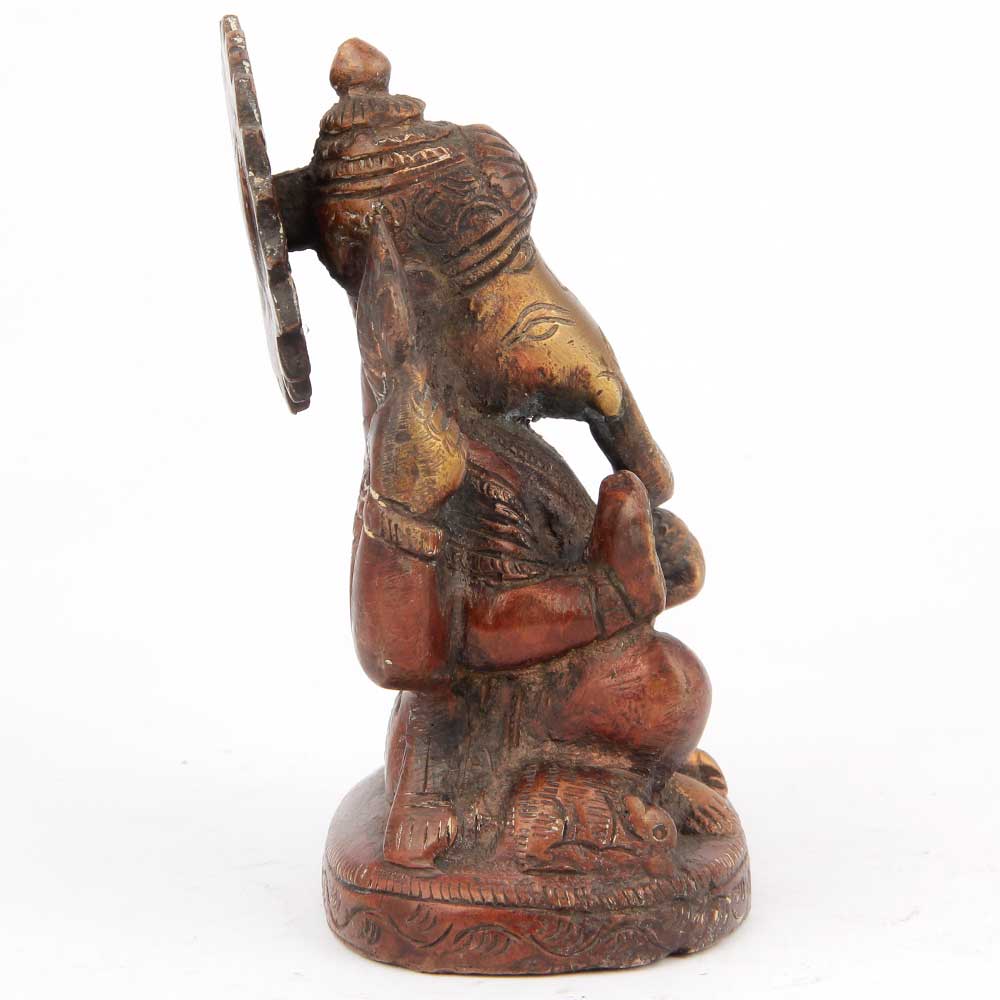 A divine aura inspiring Ganesha statue. The beautiful art is designed in brass and has a golden colour to it. Place this calm art piece in your living room for an effervescence beauty.