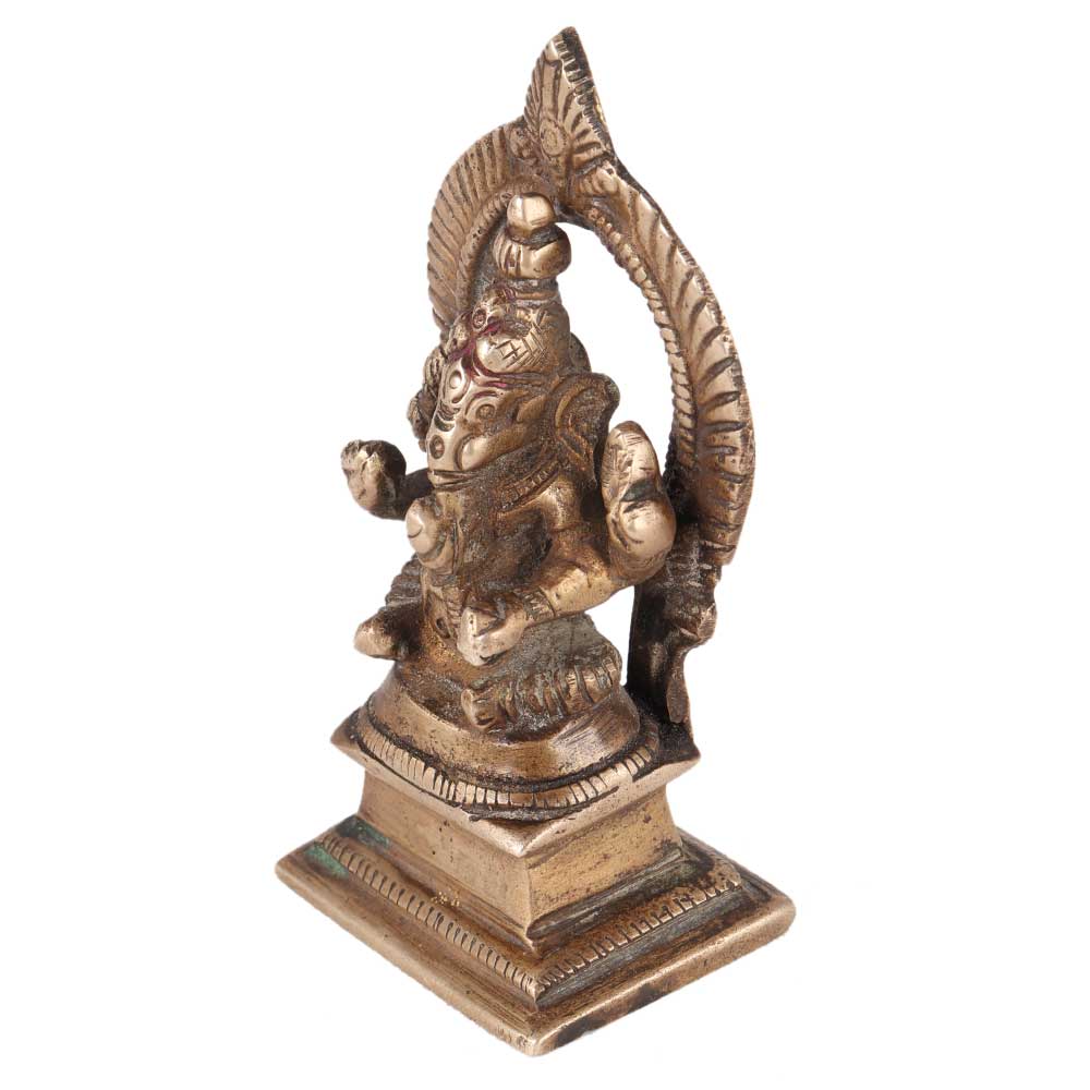 Lovely Hand-carved and extremely rare God Ganesha in sitting position with Prabhavali at the back made of solid metal brass. The Lord Ganesha Idol is said to bring success and pleasure into your house and workplace. He is also revered as the god of learning, learning, knowledge, and money.