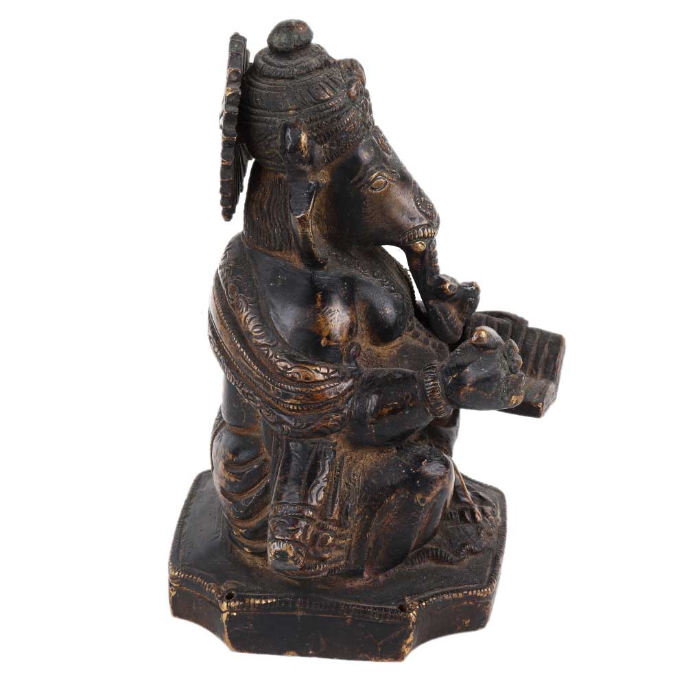 Lord Ganesha is the lord of wisdom and this lovely brass Ganesha statue sitting writing a book is a wonderful showpiece for your kids study table, office or reception area of hotels and restaurants. Gift it to your near and dear ones.