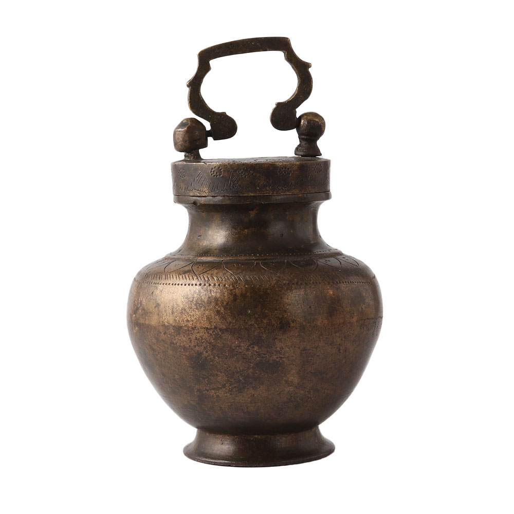 Amrita, the elixir of life, is represented by water in the kamandalu, making it a sign of fertility, life, and wealth. The kamandalu is frequently shown in the hands of gods, including water deities and ascetics like Shiva and Brahma. The Kamandalu is composed of sturdy brass and comes with a lovely brass cap that has been etched. Beautiful décor and personalised gifts for family and friends.