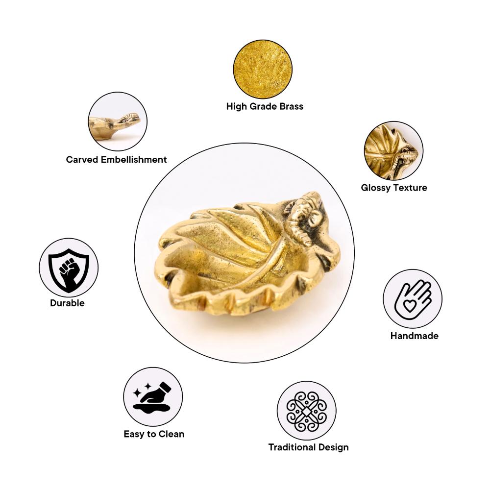 Brass Ganpati And Leaf Oil Lamp Diya is an ideal worship lamp for deity and idols, beautiful gift for Diwali, house warming and other Occasions and Ceremonies, an ideal showpiece for your home interiors. Gift for your near and dear ones.