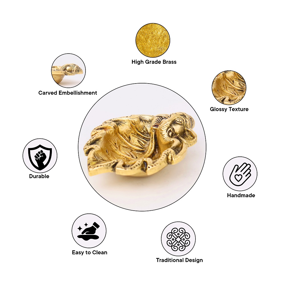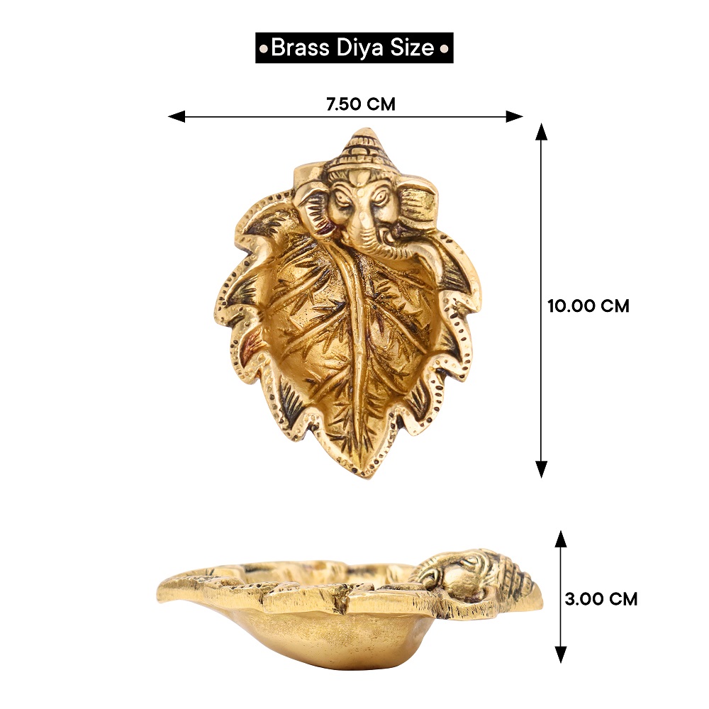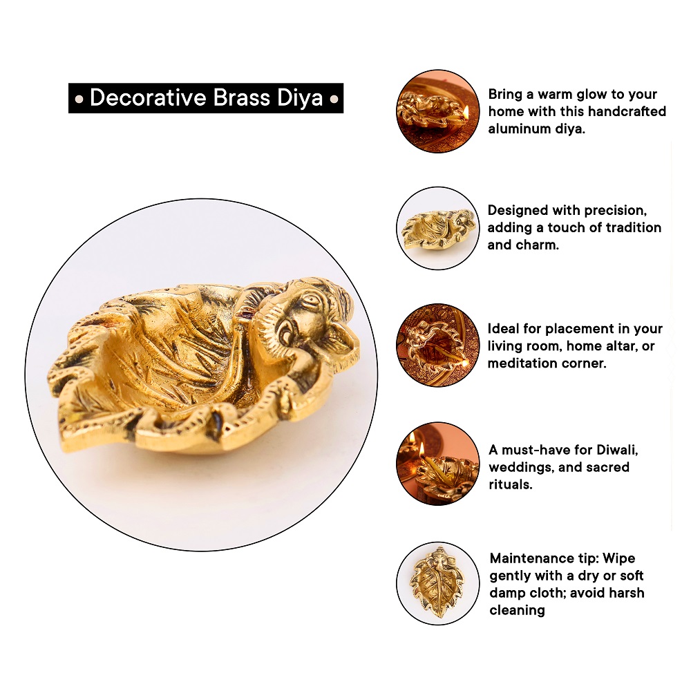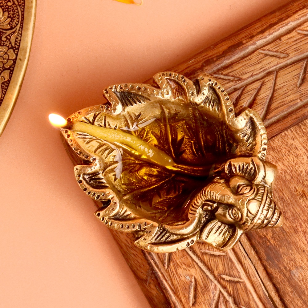 Illuminate your home with divine blessings through the Brass Ganpati on Leaf Ritual Oil Lamp. This diya combines the sacred presence of Lord Ganesha with the natural symbolism of a leaf, making it a powerful addition to your pooja rituals and festive celebrations.