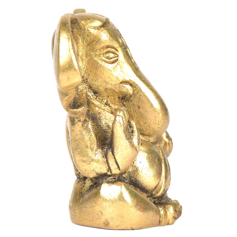 Ganpati is known by many names likes ganesha, vinayaka, gajanana etc. He is the son of lord Shiva and Parvati, he is the lord of wisdom, fortune and prosperity. Ganpati with long ears is made of brass by the skilled craftsmen of India. This ganpati is holding a laddu or modak in his one hand.