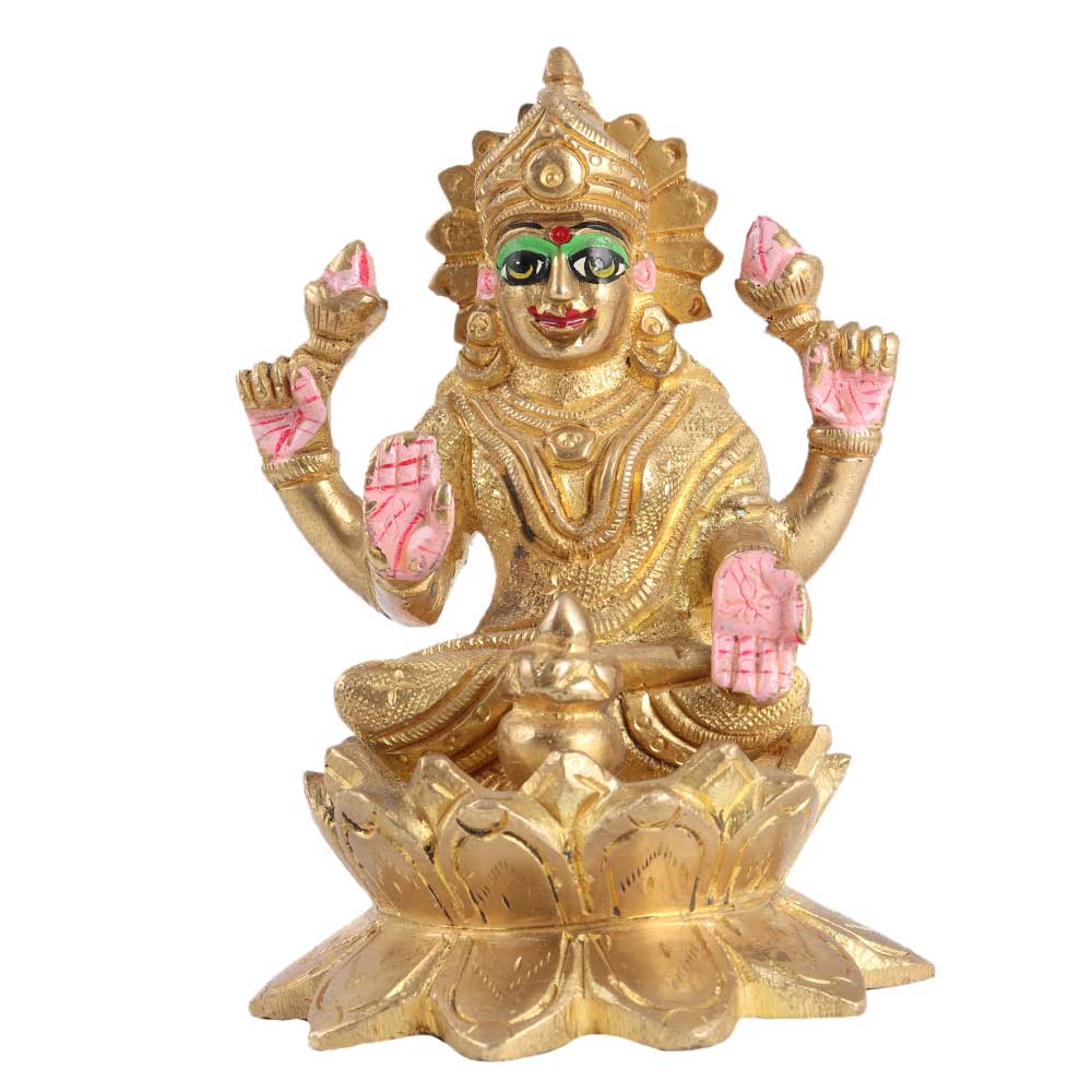 The Lakshmi devi statue was wonderfully carved in a sitting position and is made of brass material that has been beautifully coloured to make the figure appear as real as possible. It's a great decoration item for the holidays. Also used during Indian festive occasions such as Diwali and Navratras. Displays of Religious Idols in the Home Office Income, Health, Peace, and Pleasure are brought by the drawing room or Pooja Room. Finish the decor for your Festival celebration in grand style or with an Indian finesse.