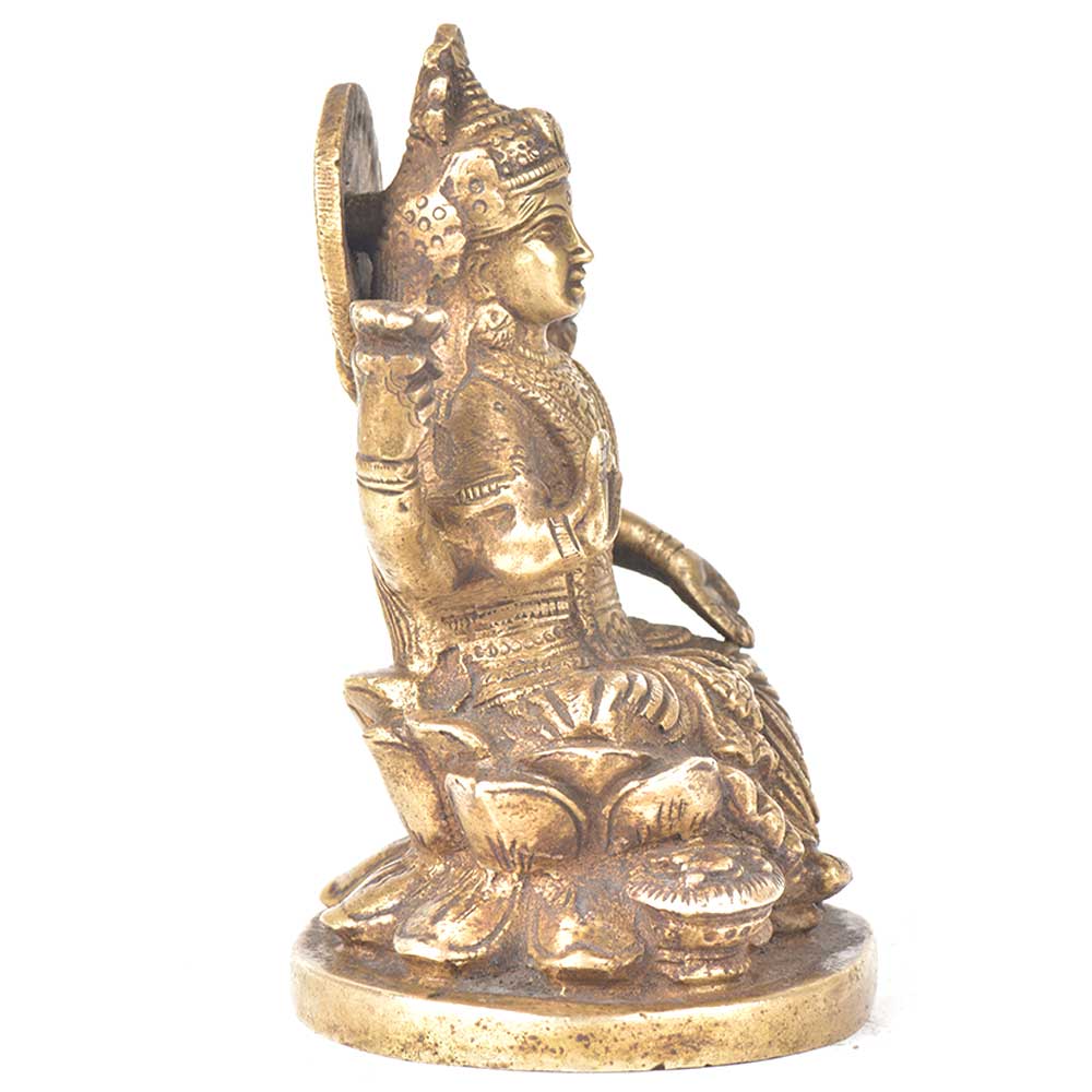 Mata Laxmi is the goddess of prosperity, wealth and fortune and she sits on lotus. She is holding lotus in both of her hands and, from the other hand she is giving blessings. This figurine of goddess laxmi is very finely engraved which makes it more special, it can be used for gifting, worshipping or for decoration.