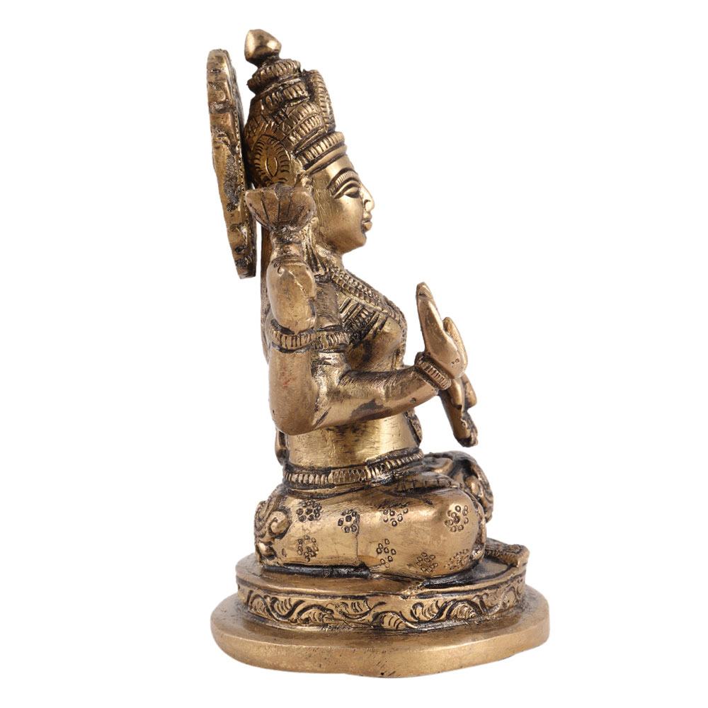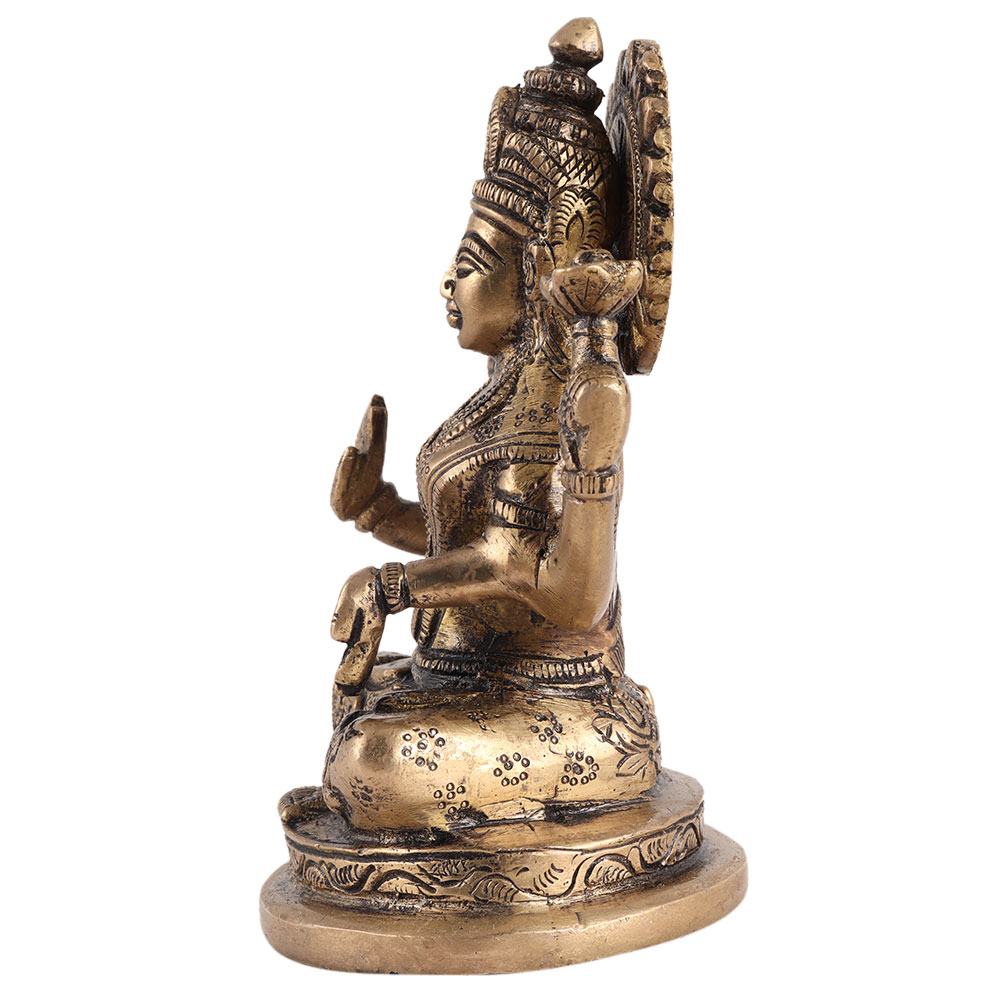 This Brass goddess Lakshmi statue will look great in your apartment, garden, or office. Lakshmi, the wife of the supreme Hindu god Vishnu, is revered as the goddess of wealth, luck, and good fortune in India. Her attributes, such as being a symbol of abundance and wealth, can also be found in other religions such as Jainism and Buddhism. This Lakshmi idol is an excellent spiritual or religious home decoration item. Laxmi murti can be placed in the office to dispel all evil forces. It can be used to create a divine atmosphere in a pooja room, living room, or drawing room. Ideal as a puja return, wedding, housewarming, or other festive occasion gift.