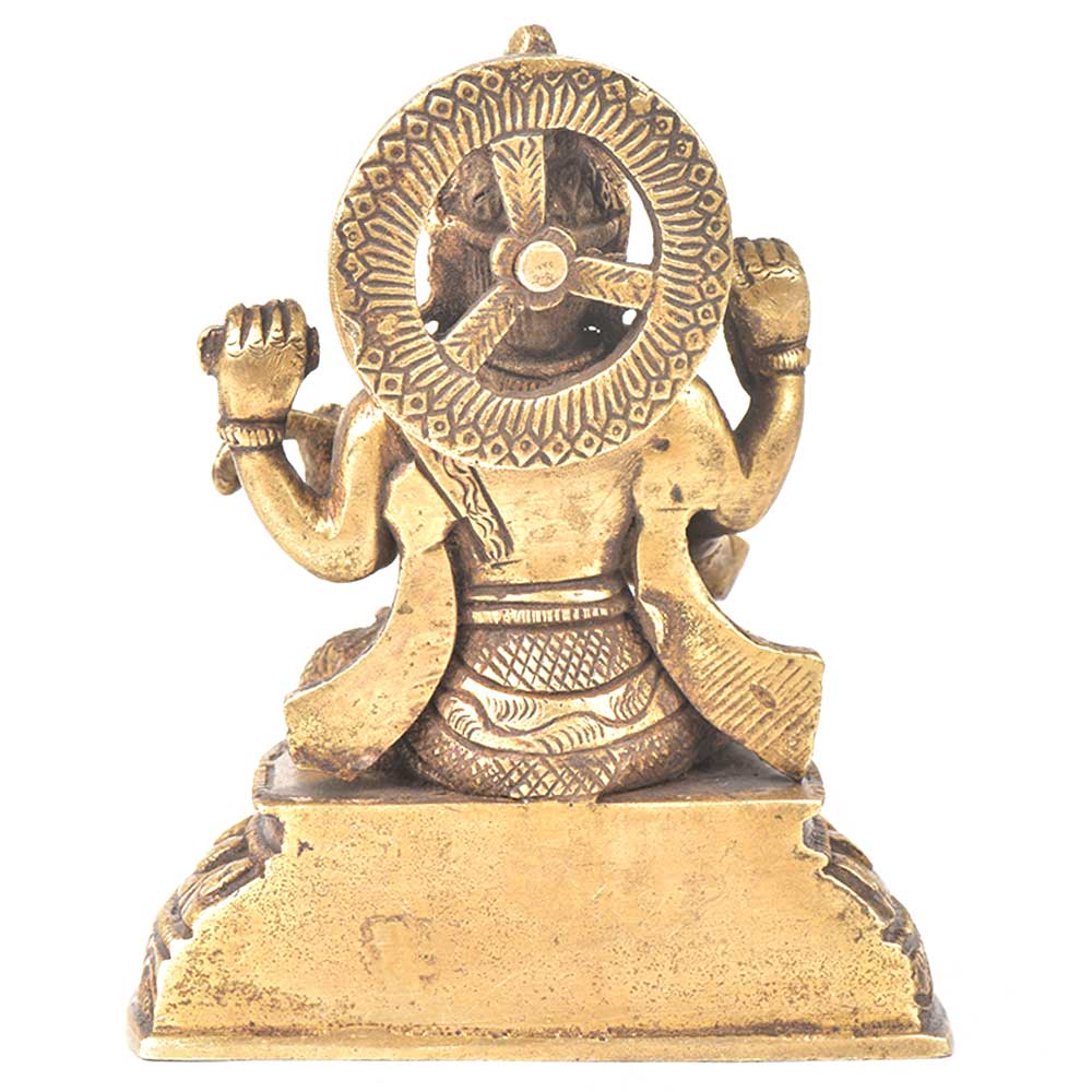 Goddess sarwasti is sitting on a raised platform with veena in her hand. This figurine is made of brass by the master craftsmen and this figurine has very finely done engravings which makes it more beautiful. It can be used for gifting, decoration or for worshipping.