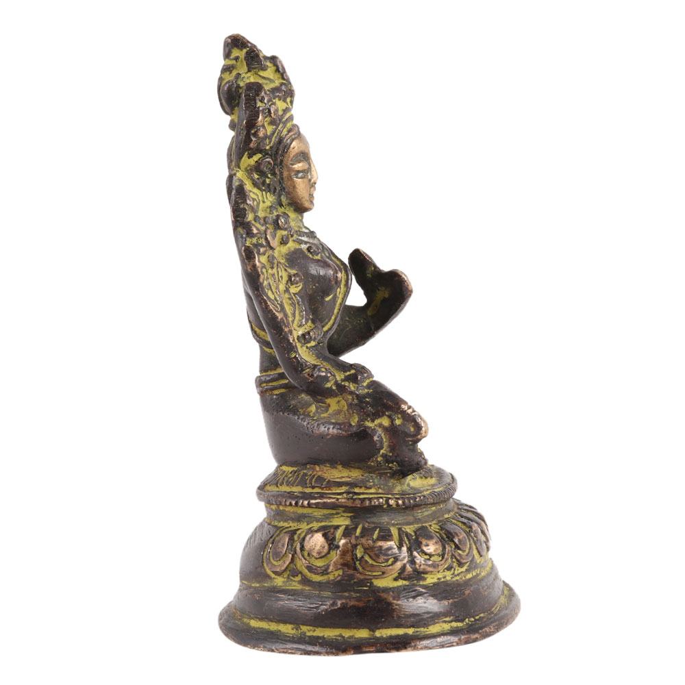 Tara is also a forest goddess, most notably as Khadiravani, the Khadira forest dweller, and is generally associated with plant life, flowers, acaciakhadira) trees, and the wind. Tara is also known as a healing goddess and a goddess of nurturing quality and fertility due to her association with nature and plants. Her genuine ground on Mount Potala is described as "covered with numerous trees and creepers, resounding with the sound of many birds, and with the murmur of waterfalls, thronged with various wild beasts; many species of flowers grow everywhere." Her association with the wind elementvaayu) also means that she is quick to respond to any requests.
