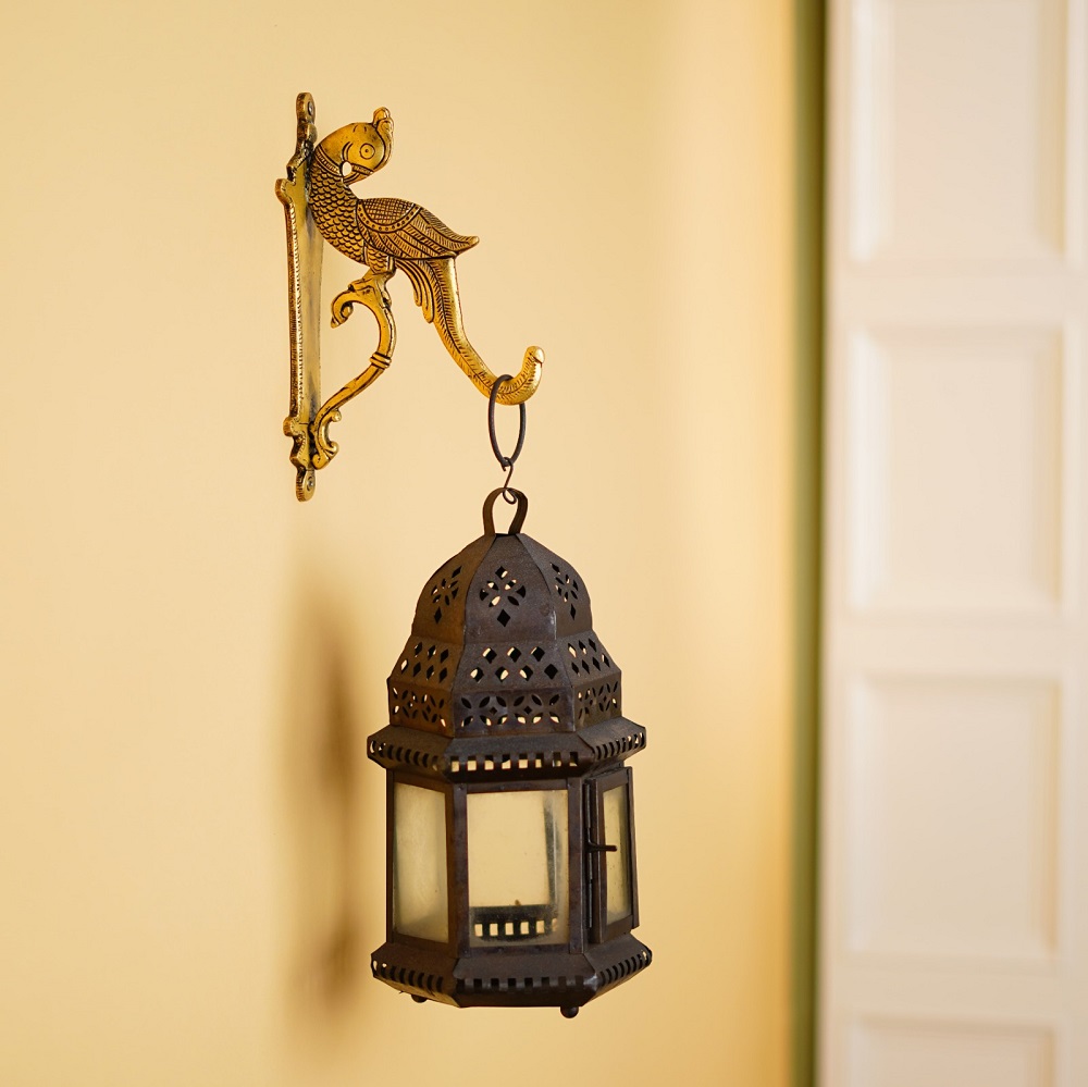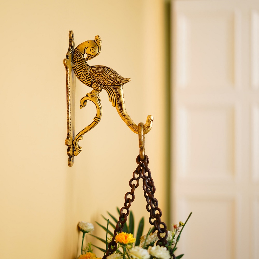 Hand crafted brass Peacock figurine bracket for wall shelf is suitable for home, workplace, hospitals, hotels, shops, cafe, bars, living room, corridor, foyer, study area, kids room, kitchen and bathroom