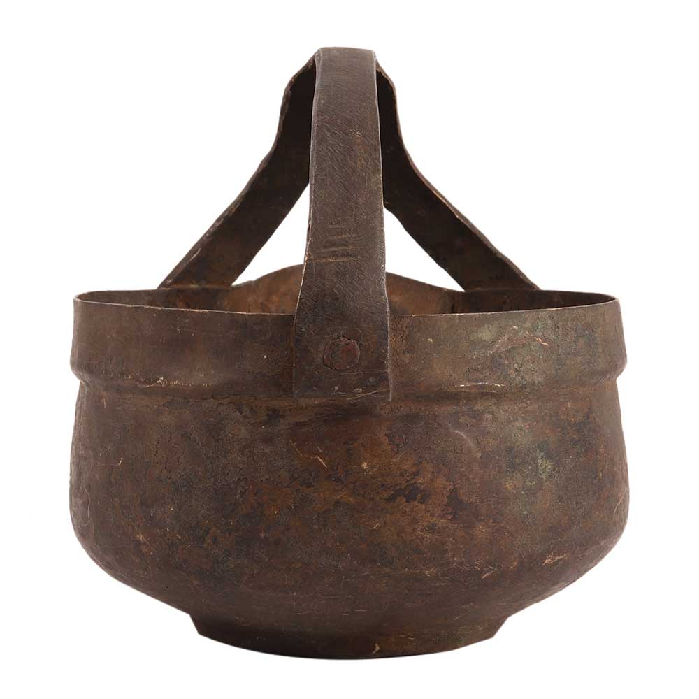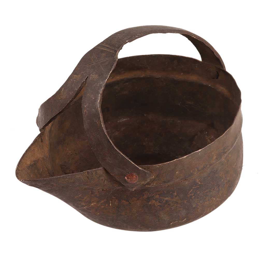 An antique brass gravy serving bowl with a forked handle to give support while carrying it to different places. Though it is not used anymore for serving it can be used as a planter or as a garden decoration product. Gift it to your friends and relatives.