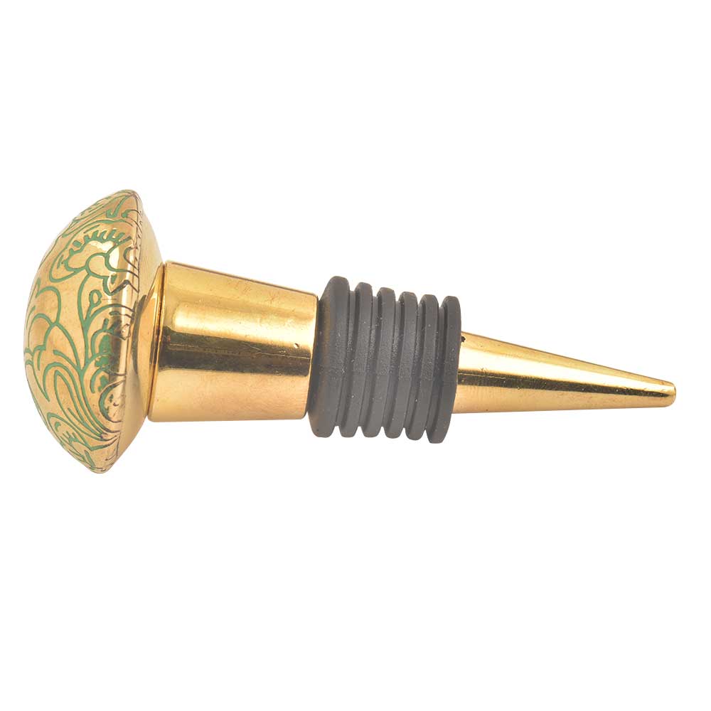 Brass Green Floral Wine Stopper. Zinc Alloy Wine Bottle Stopper with Attractive Jute Bag Packaging.