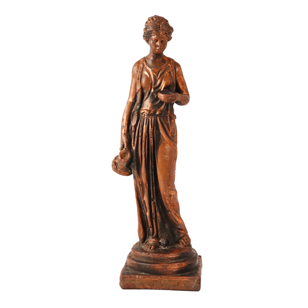 The brass Greek goddess statue, also known as the Griechische göttin world famous statue, is a popular decorative item that is inspired by ancient Greek art. It is a brass statue that portrays a Greek goddess, often depicted with flowing robes, a crown, and other symbols that represent her divinity and power. These statue for home decor are often used as home decor, as well as in hotels, museums, and other public spaces. They are appreciated for their artistic value and are also believed to bring good luck and positive energy to the space they are placed in. The Griechische göttin statue decor is a testament to the enduring influence of Greek mythology and art on contemporary culture. his beautiful reproduction statue of Hebe with a cup and pitcher is wonderfully detailed, and is finished in bronze paint.