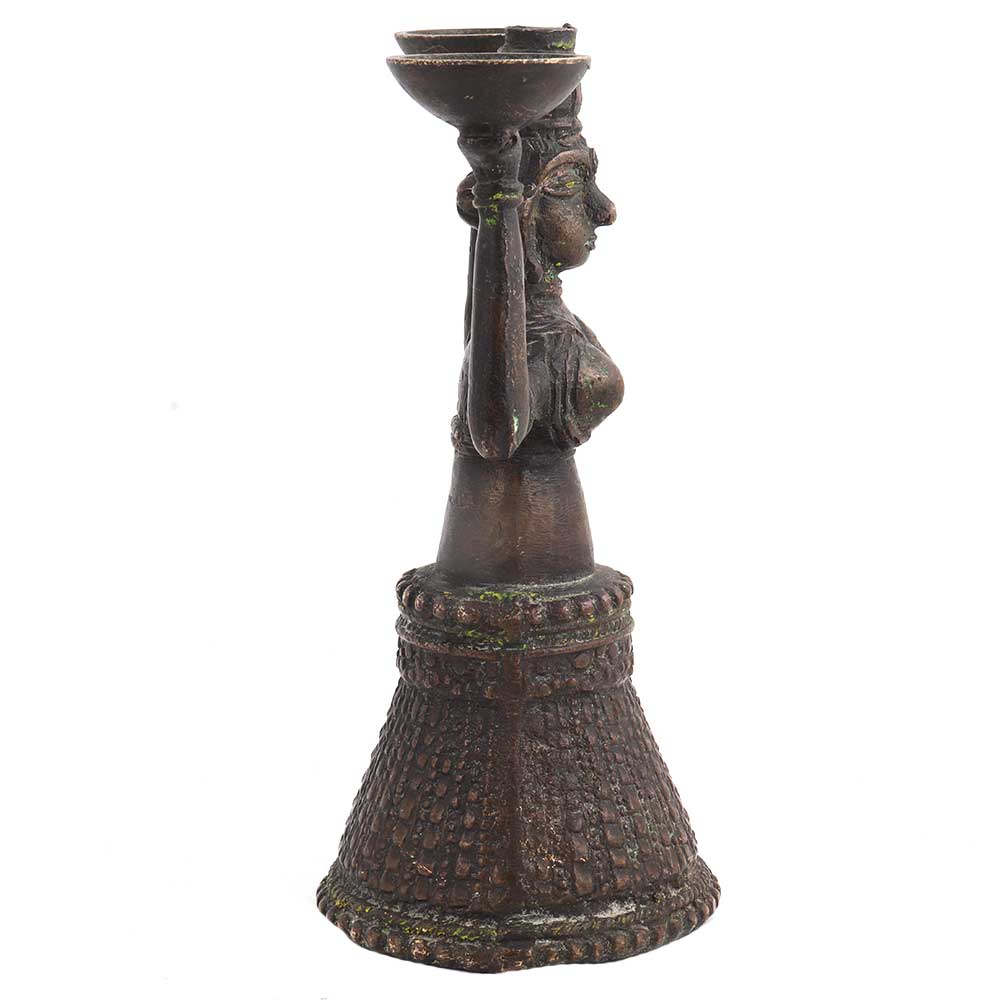 Brass Gujarat Tribal Women Holding Two Bowls Candle Holder used as a table display, home decoration, table display at home office, hotels and clubs, wedding gift, Christmas gift and house warming