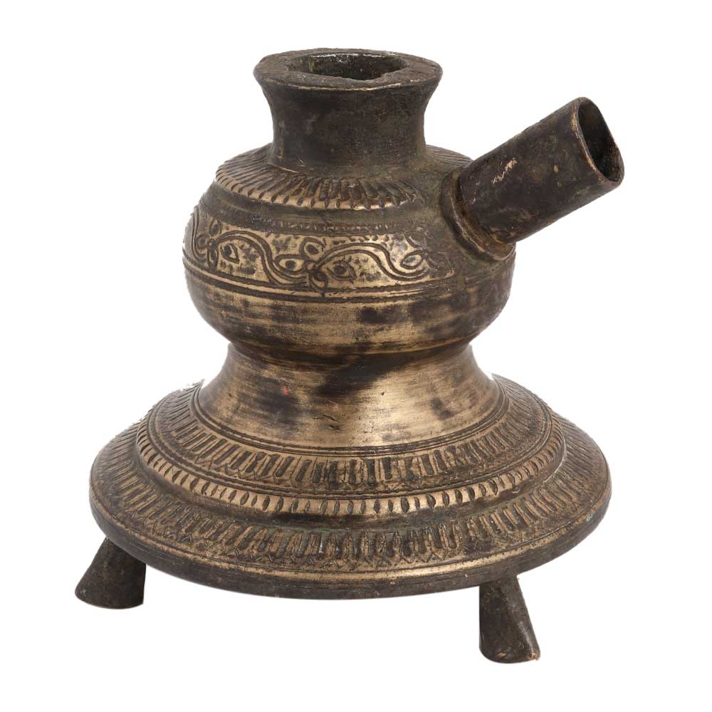 Brass Hand Carved Traditional Hookah Base Three Legs Fitted with the Easily Damaged or Mislaid Hose, Mouth Piece and Fire Tray Meant to Be the Water Holding Base. Use it as a decorative piece for your living room or guest room. traditional Indian Hookah Pot Hookah Base for Collection Decorative.