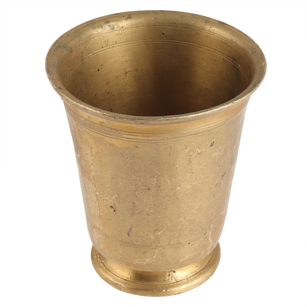 This brass tumbler or glass is part of our kitchen's traditional adornment. It is traditionally designed and handcrafted according to Indian tradition. It can be used for home, office, guesthouse, hotel, bar, wedding receptions, gatherings, and as a gift on the occasion of marriage, anniversary, birthday, and carnival.