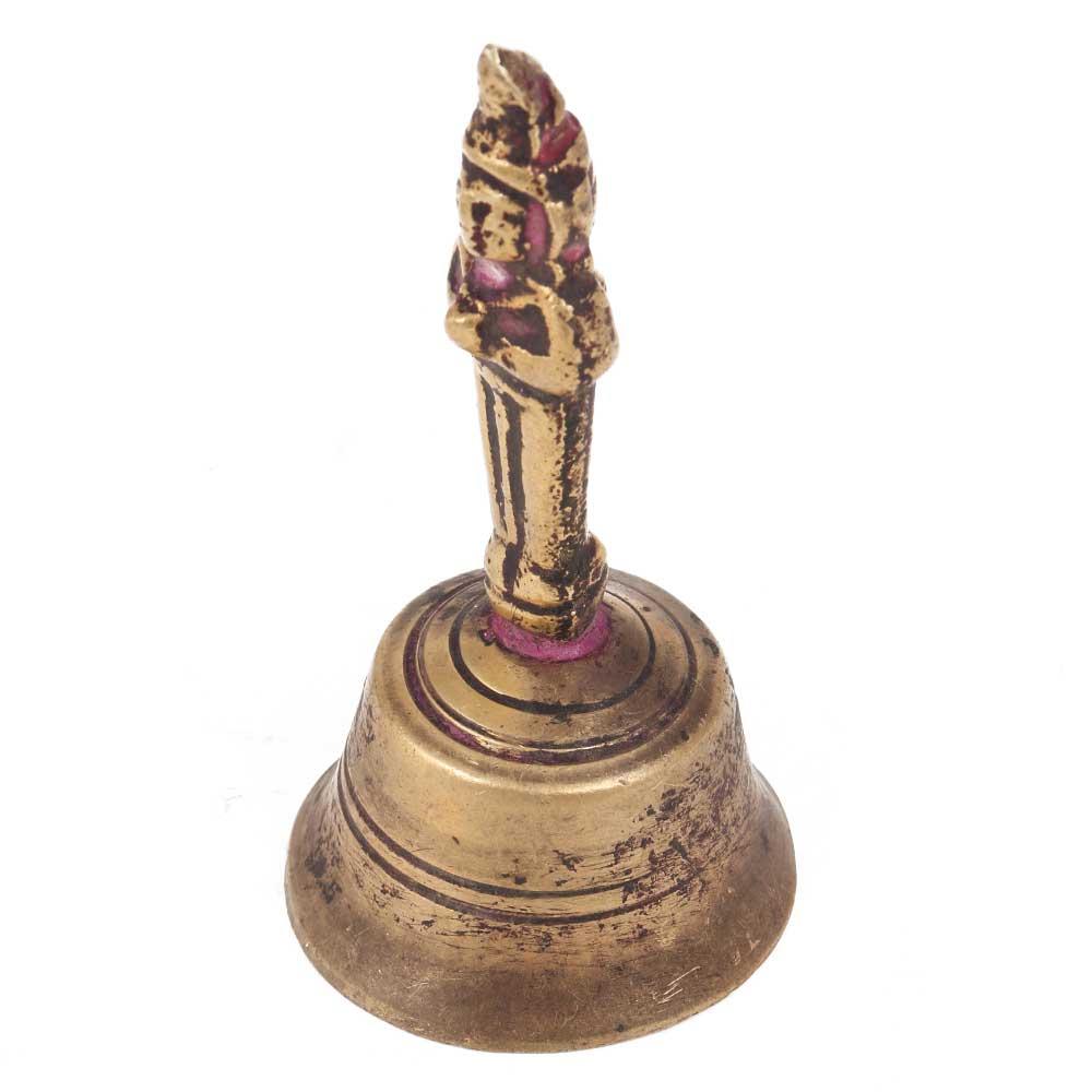 Brass handheld worship bell with deity finial is available in a variety of sizes and is commonly found in temples, churches, and homes. Diwali gift, new year gift, housewarming gift for your loved ones.