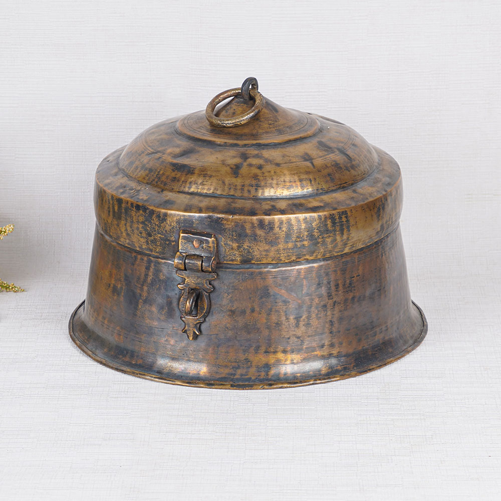With its simple yet elegant design and a stunning brown finish, this jewelry box is a captivating piece that seamlessly combines functionality and aesthetics. The box features a convenient handle on the top, allowing for easy transport and practical usage to store precious jewelry and gemstones. Not only does this brass jewelry box serve as a perfect storage solution, but it also adds a touch of sophistication to any home or office decor. The antique finish exudes a timeless charm, making it a remarkable decorative piece that effortlessly catches the eye. Its secure latch ensures the safety of your cherished belongings. This remarkable brass jewelry box is not only suitable for personal use but also makes for a thoughtful gift for your loved ones on special or festive occasions. Furthermore, its allure is such that it can even be displayed in museums or exhibitions, attracting discerning customers with its beauty and craftsmanship. Elevate your jewelry collection and decor with our exquisite brass jewelry box, a true testament to artistry and elegance.
