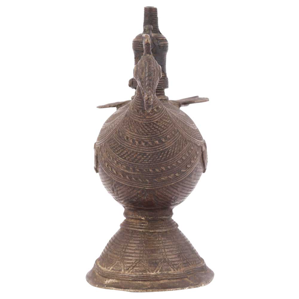 The Oil Lamp is in the Form of a Peacock Whose Body Comprises of a Compartment for Storing Oil. on the Back of the Peacock There is a Small Nozzle in Which a Cotton Wick is Inserted So as to Keep It Soaked in Oil.