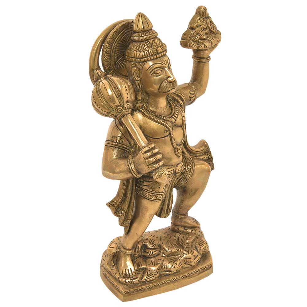Brass Hanuman is Holding a Gadha in His One Hand and Other Hand has Dronagiri Mountain. Lord Hanuman Was Sent to Get the Sanjeevini Butti From Dronagiri Mountain in the Himalaya. Then He Couldn't'T Identify the Herb So He Got the Entire Mountain with Him. Lord Hanuman is Considered as the Remover of Devils From Life. Lord Hanuman Figurine is in Standing Position. Hanuman is the Devotee of Shri Ramchandra. The Brass Hanuman Statue has Fine Detailing. Hanuman Brass Statue has Been Shown as Wearing Chola and Ornaments.