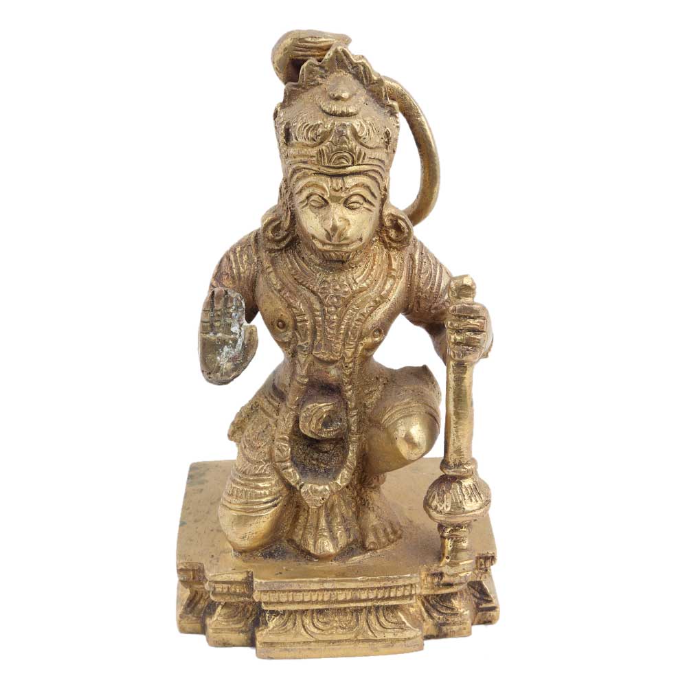 The Brass Hanuman Statue has Fine Detailing done by expert artisans of India. Hanuman Brass Statue has Been Shown as Wearing Chola and Ornaments. Diwali gift, anniversary gift, new year gift, house warming gift for your near and dear ones.