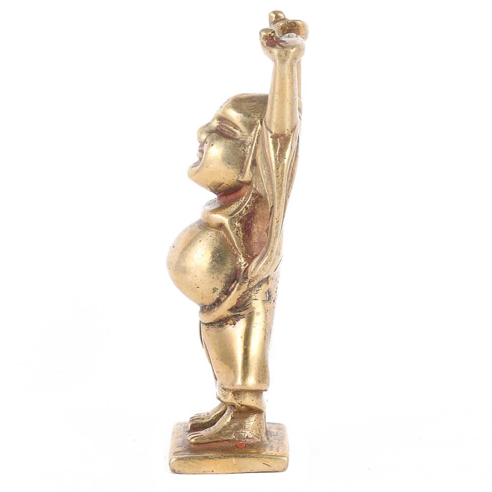 Decorate your interiors in a different way with this beautiful showpiece featuring a Laughing Buddha. It represents good health, happiness, prosperity, and longevity. They represent the Buddhist idea that a good life is indeed possible in this world. The statue depicts a Laughing Buddha standing with his hands in the air.
