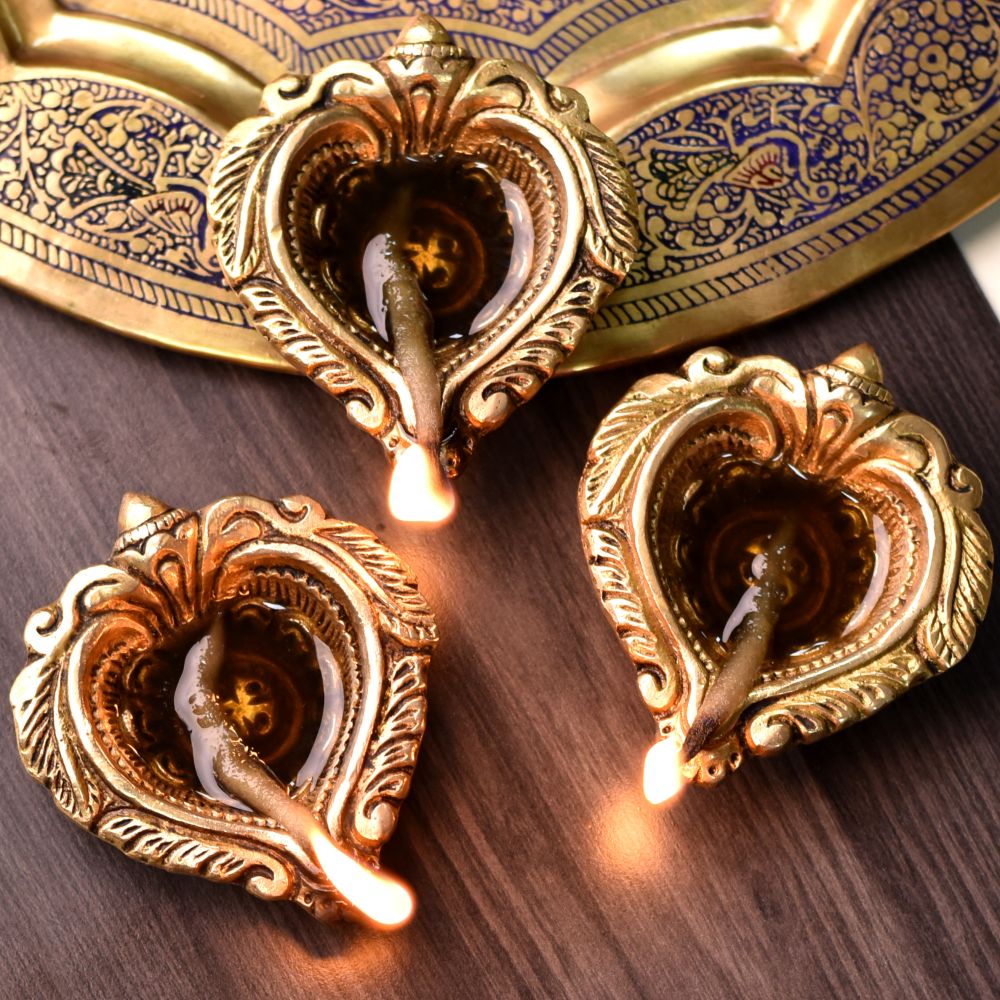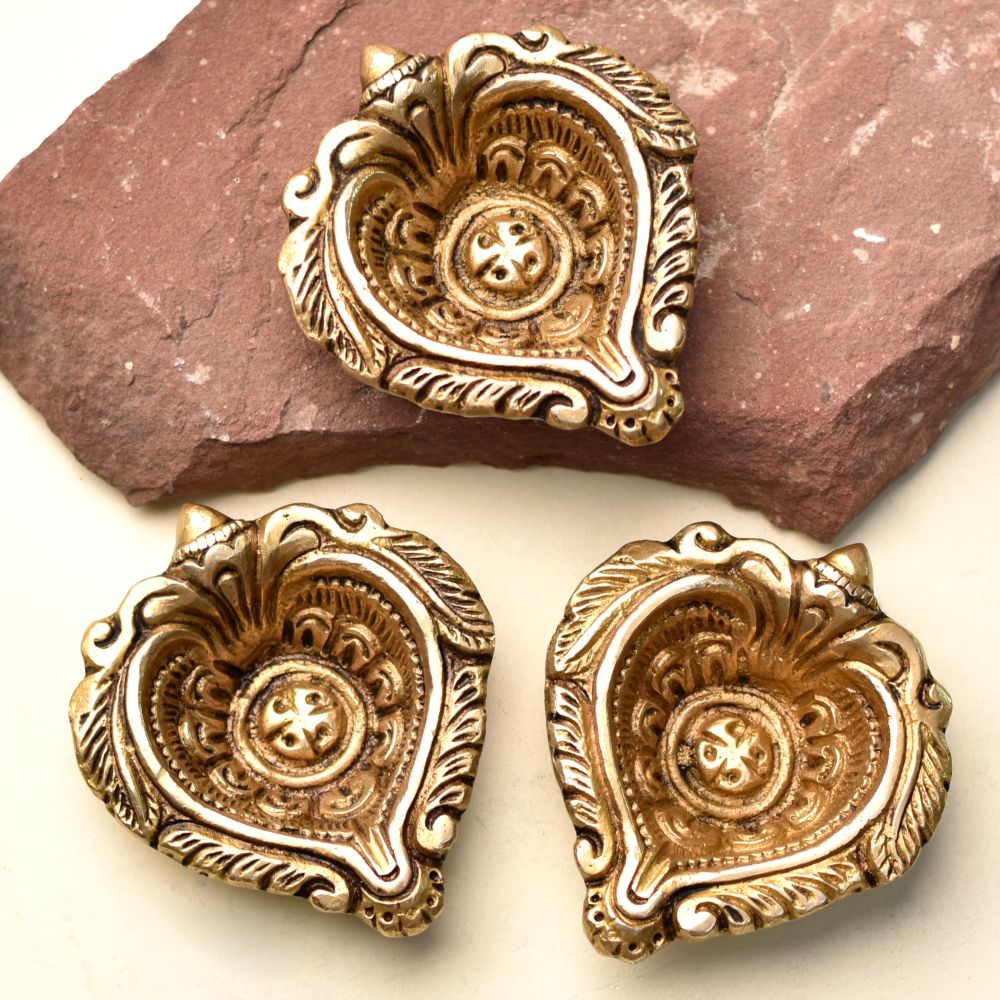 Pack of 3 Brass Heart Shaped Oil Lamp Diya