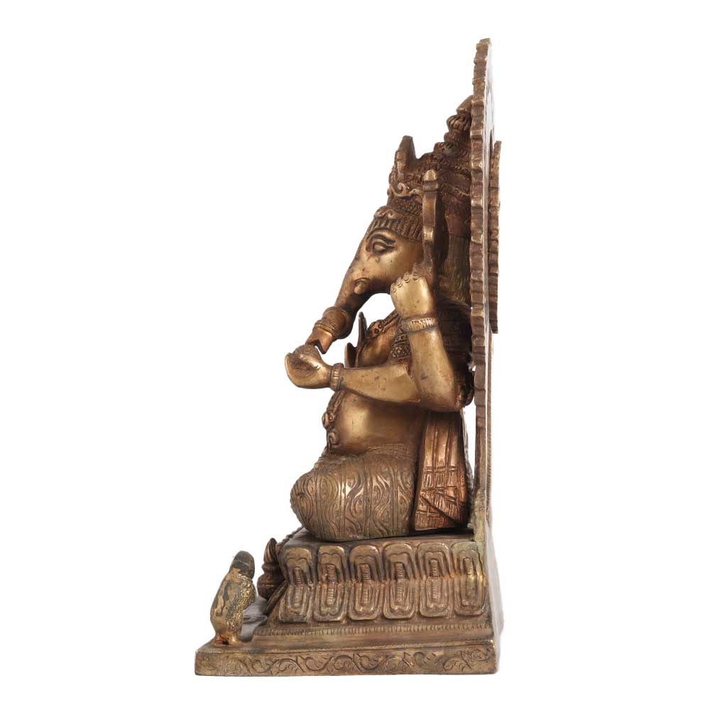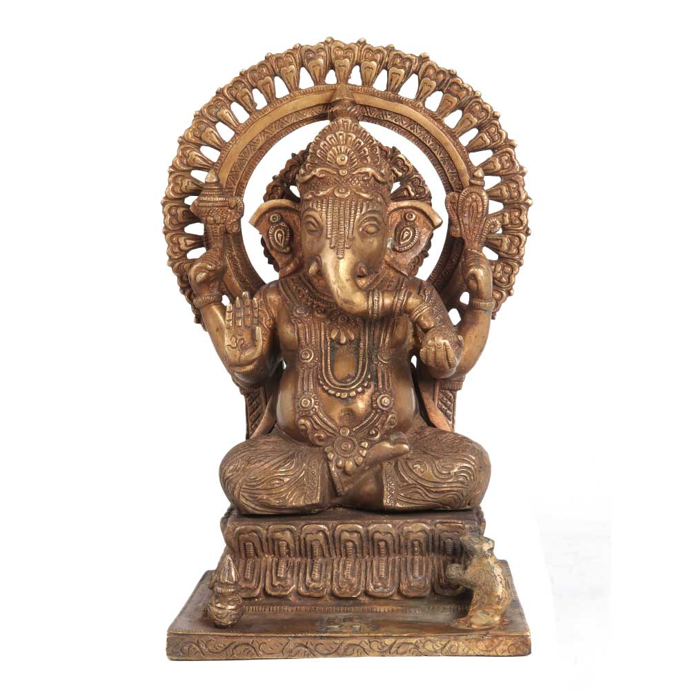 Buy a brass Lord Ganesha statue online that is made of best brass with intricate details to deliver a long lasting impression on the interior. It is made by skilled craftsmen from India with their hands, which makes it eye-catching for your visitors and guests. Bring this god statue home and place it in your prayer room or temple to bring an ethnic flair to the interior. Lord Ganesha is popularly worshipped in Indian temples to bring prosperity, fortune, happiness and success in life. Lord Ganesha is the son of Lord Shiva and Goddess Parvati and is worshipped before starting anything new. Gift this auspicious statue to your loved ones on special and festive occasions.