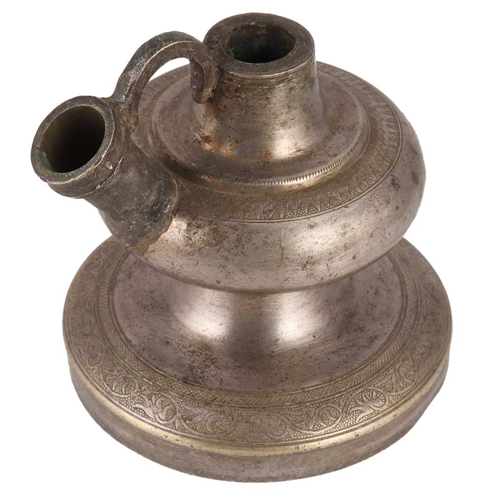 Old brass Mughal Interior decoration hookah pot. Earlier it was used for Tobacco smoking using a funnel and a pipe with a base. Decoration for the home, restaurant, or cafe, engagement party adornment, friends giving gift, Diwali gift, and so on.