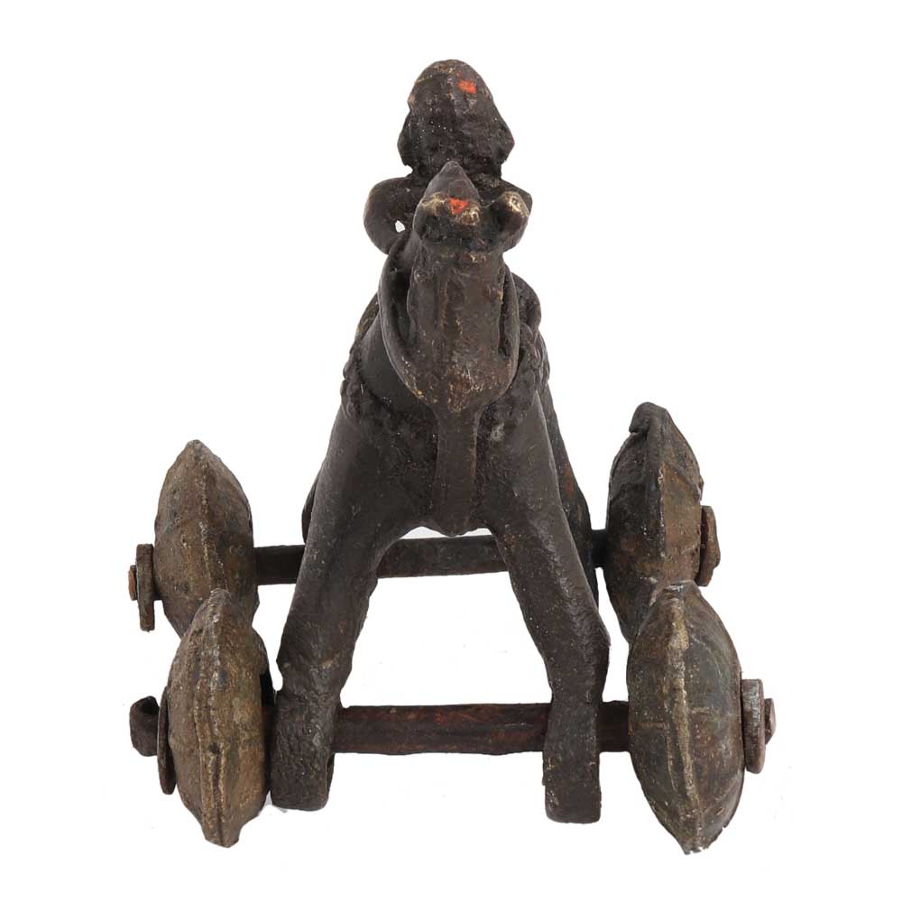 Brass Horse Temple Toy With Rider On Wheels are What Their Name Conveys, Used in Temples for Prayer (And Quite Possibly for the Benefit of Children as Well). Many Variations Can Be Found, From Large, Elaborate Coaches Pulled by Elephants, to Simple Animals or Animals with Riders in Many Sizes.