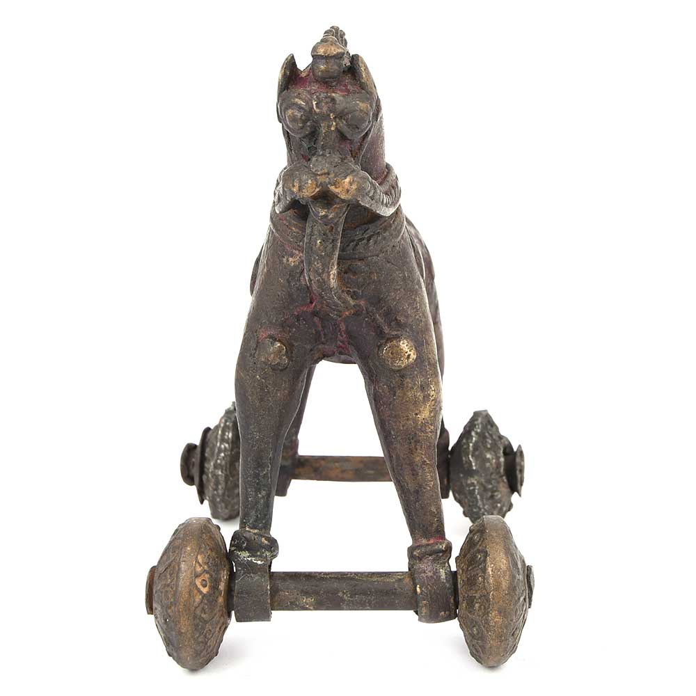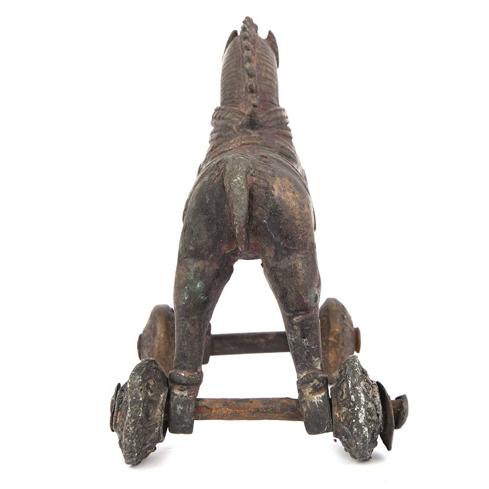 Handmade to Perfection Vintage Small Horse on Wheels India Child'S Temple Toy Cast Metal Brass with Mixed Metals.