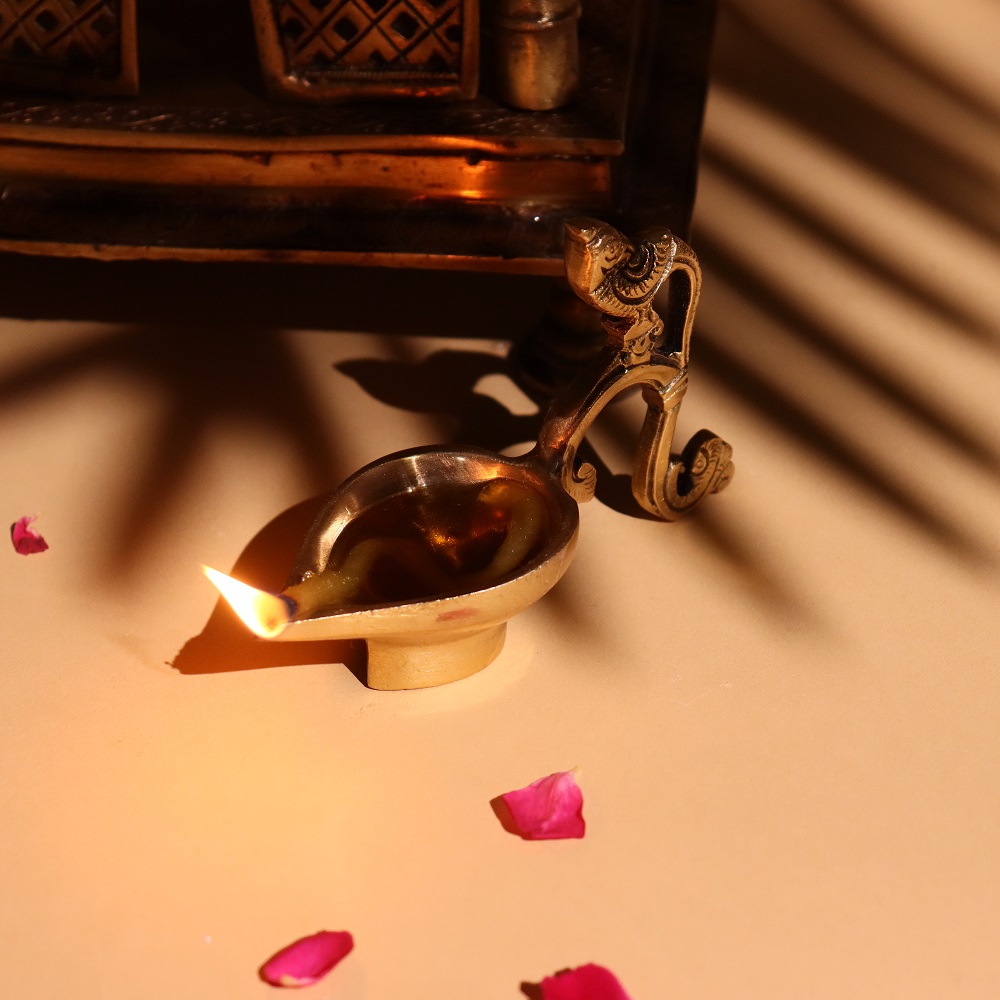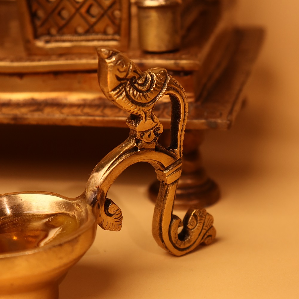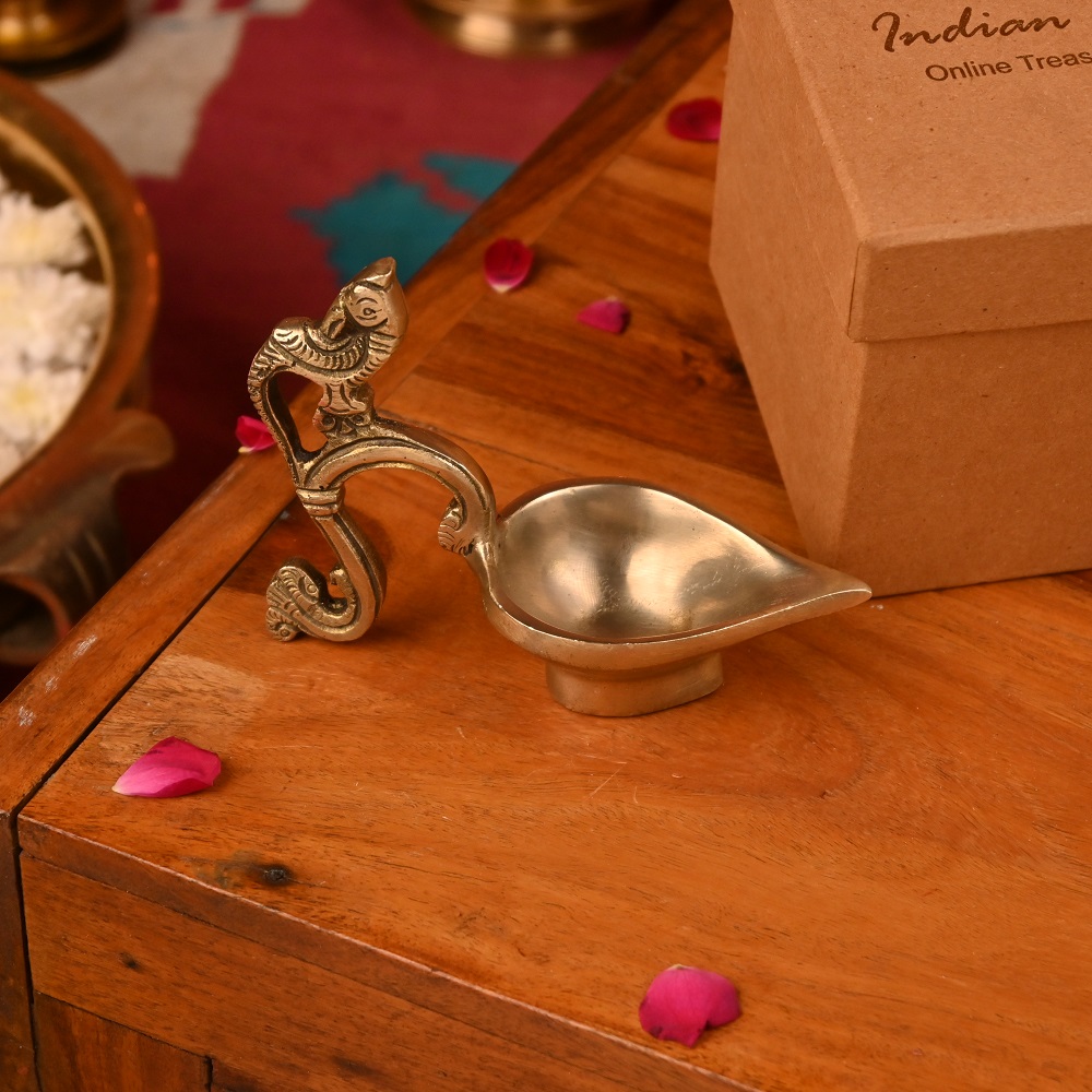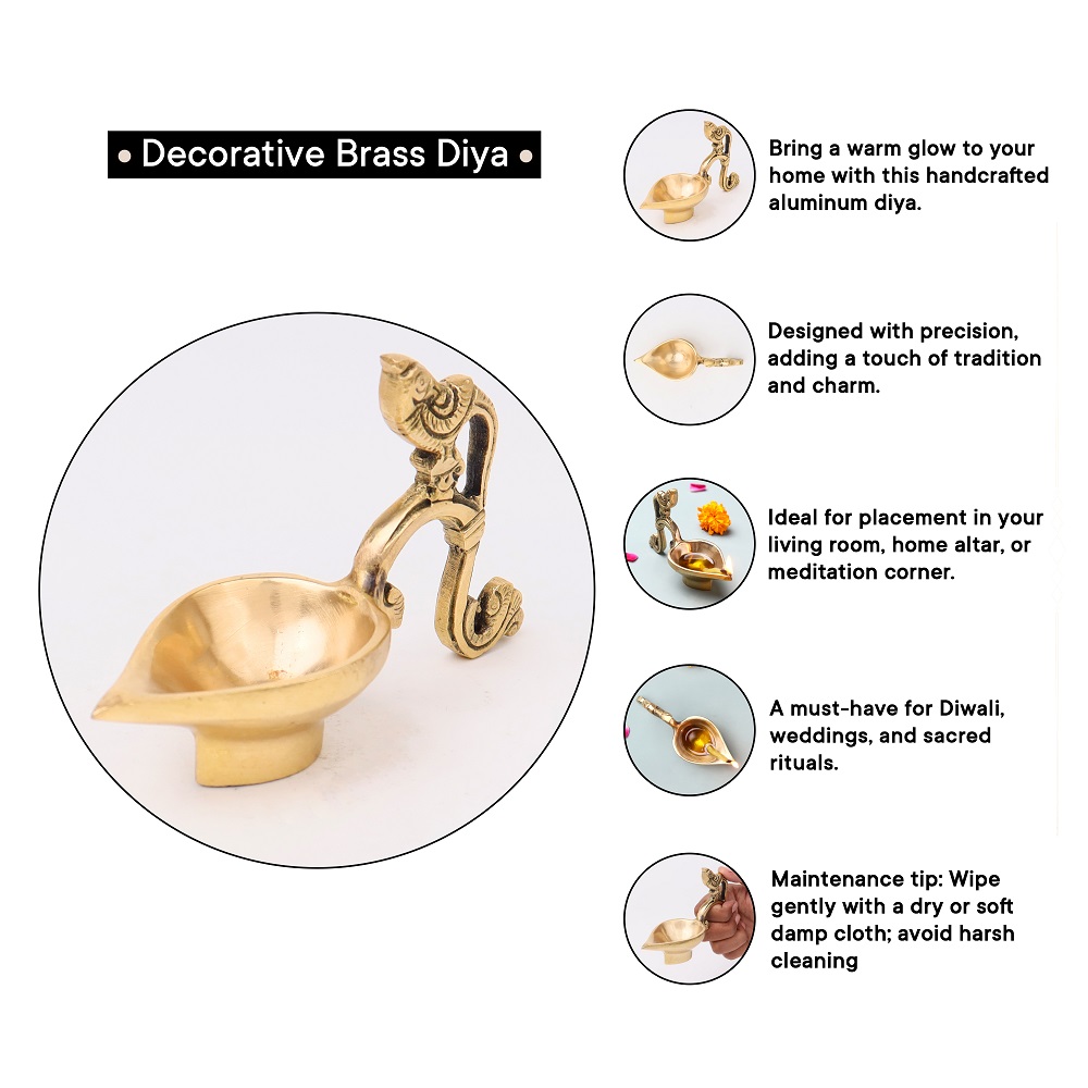 Elevate your Diwali celebrations with this exquisitely handcrafted Brass Indian Peacock Holding Diya. This eye-catching piece features a regal peacock gracefully holding a traditional diya, making it a perfect addition to your home decor during the festive season. Its detailed design and warm brass finish bring a sense of luxury and celebration to your surroundings.