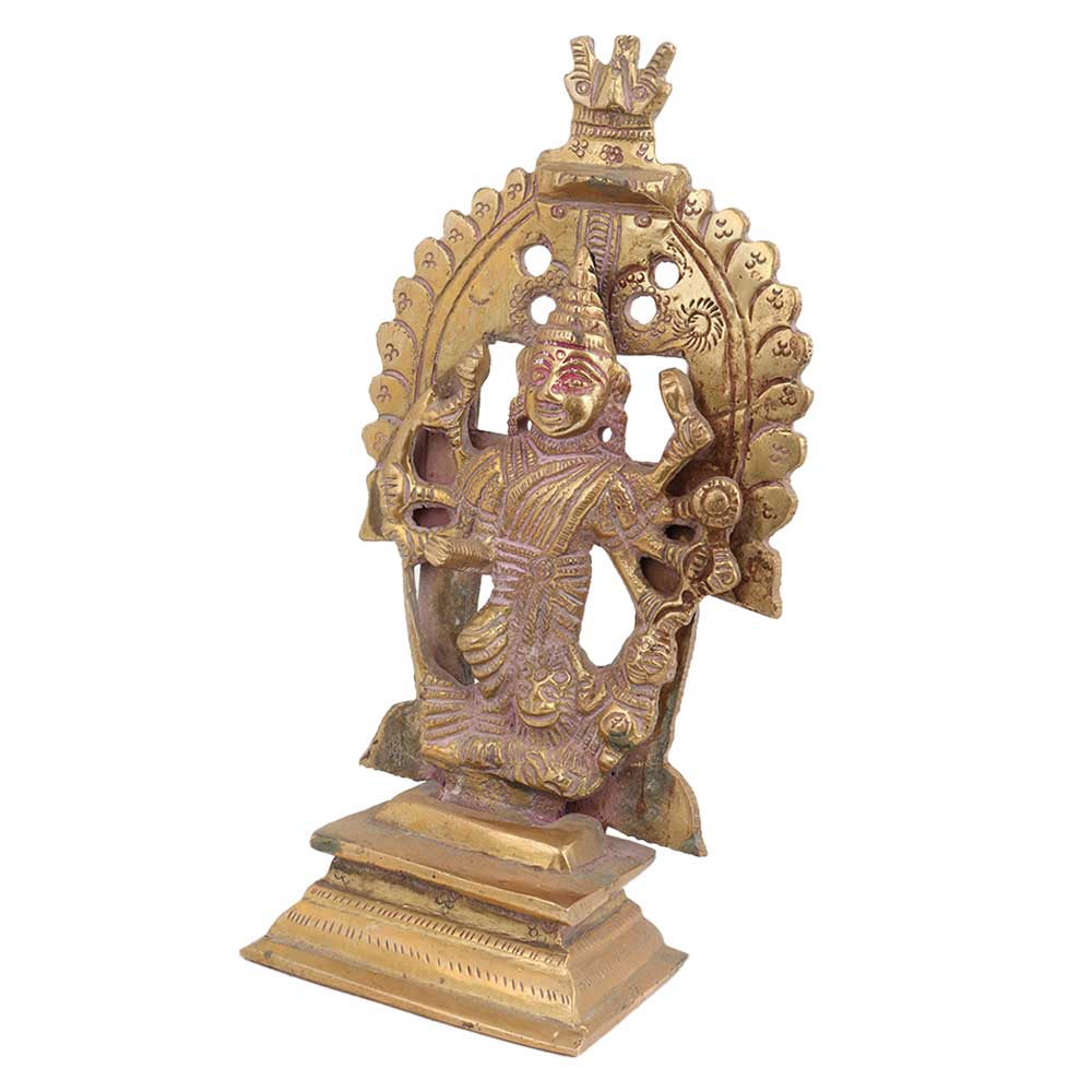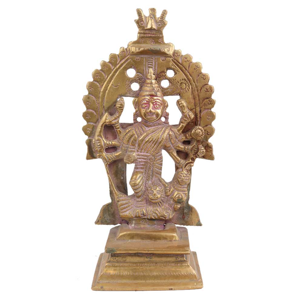 This is a traditional brass standing indian goddess statue made using the lost wax method by master craftsmen of India for worship in homes and temples , spiritual gift, good luck , vastu , souvenir, wedding gift, Diwali gift.