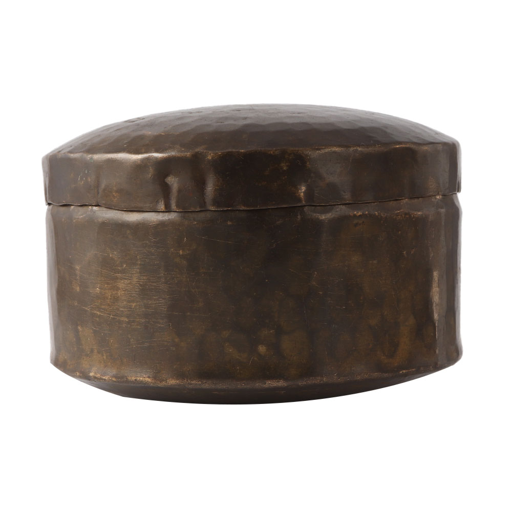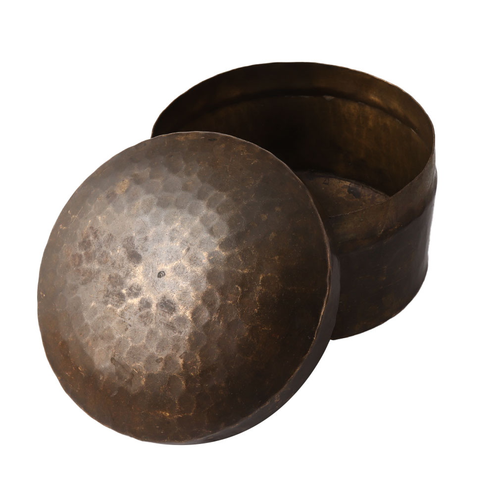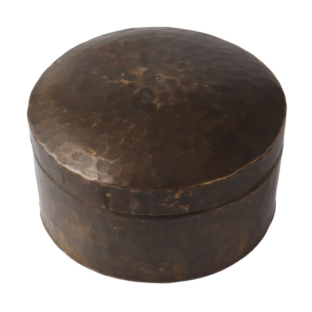 Handcrafted brass round storage box with a hand hammered design on the entire box including the lid. Use it to keep your jewelry, valuables, and other valuables safe. Give it to your loved ones for Diwali, weddings, anniversaries, birthdays, and other special occasions.