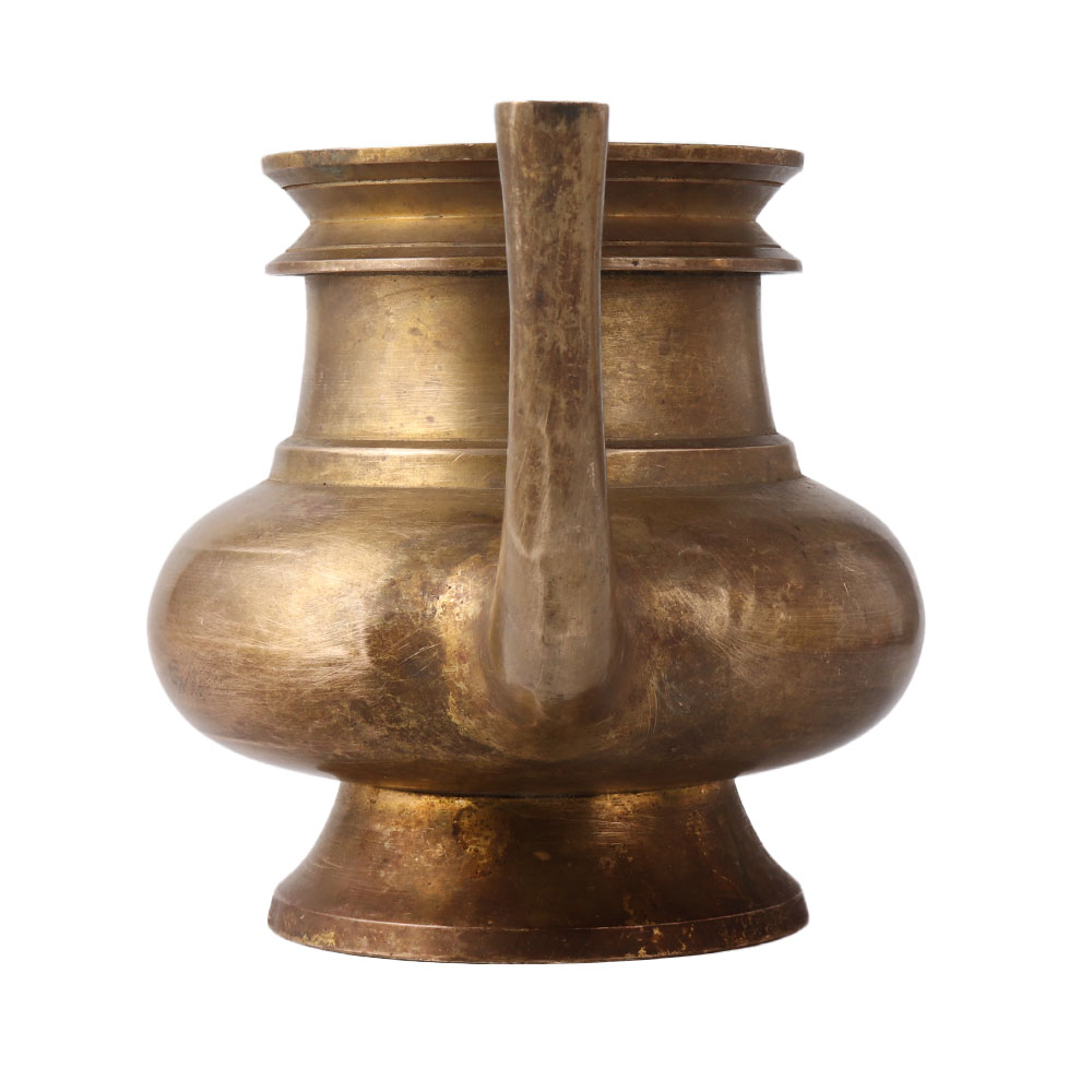 Handmade Pot made of brass with a long spout or pooja jal kamandal, holy water is stored and used in pooja, temples, and other places of worship. The pot features a bulging centre, a long narrow neck, and a beautiful rim. It comes with a long stout for pouring water. It can be used to decorate flowers, tables, and temples and other places of worship. Give it to someone you care about.