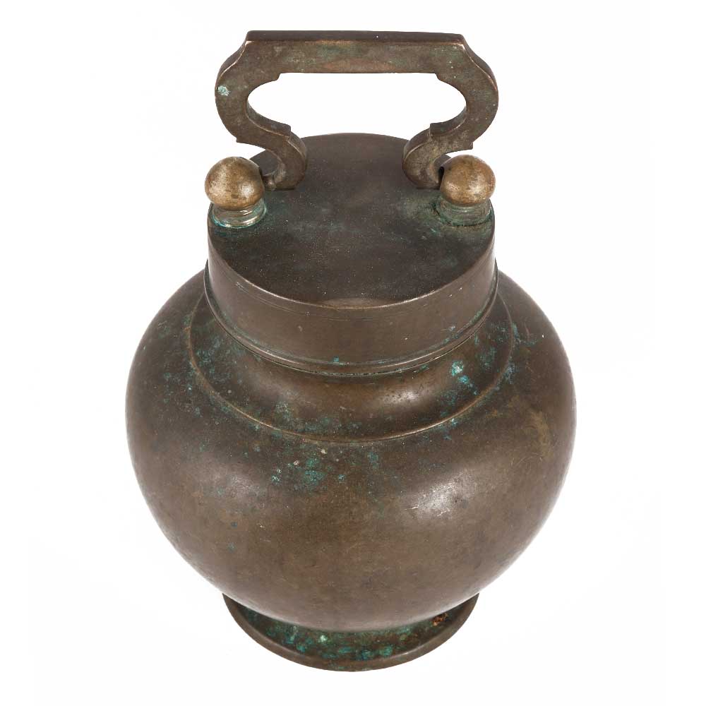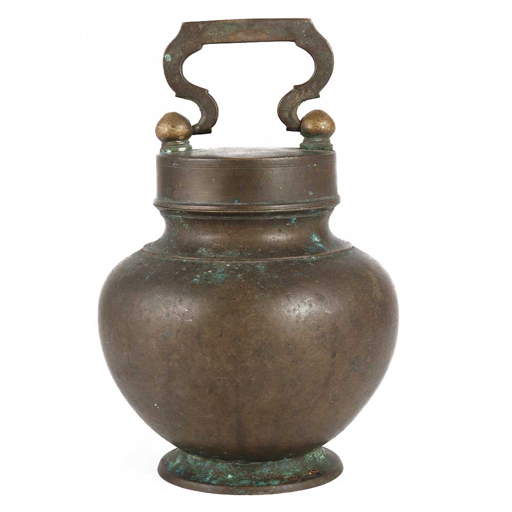 The sacred Kamandalu or Brass holy water pot with lid and handle is filled with holy water or flowers and brought to the temple for puja or to the temple by the women of the home.