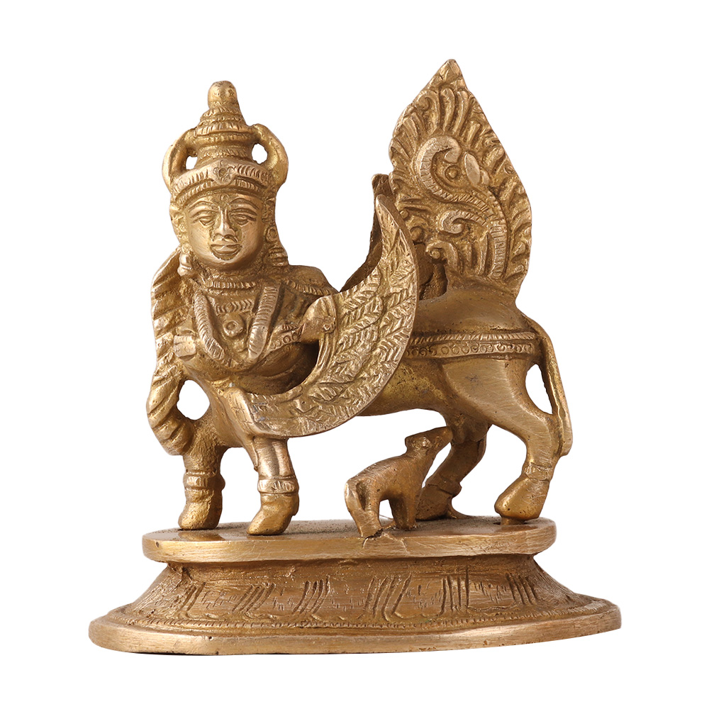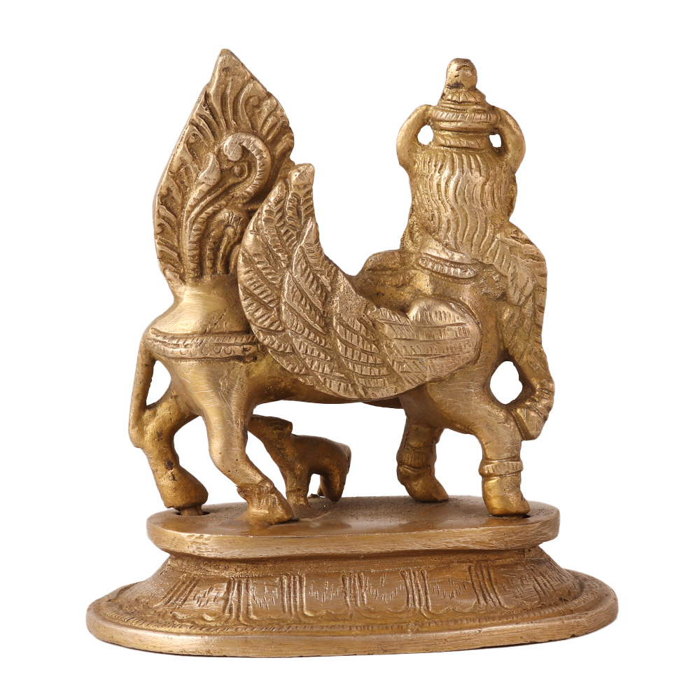 The gift-giving cow known as brass Kamadhenu Indian figurine may grant her master any wish. She is the abundant cow that came from the ocean's churning, or Samudramanthan, and was claimed by Indra as his own. The mother of all cows, she is. She possesses a human head, breasts, wings, and tail in addition to a cow's body. A little Shiva Linga can be seen beneath her udders. According to the Puranas, Kamadhenu and the Kalpataru, a wish-fulfilling cow and tree, respectively, were two of Lord Shiva's most exact gifts to humanity. These two miracles of the Lord would grant anyone's wish for all of time. However, Kamadhenu metal statue eventually grew weary of people requesting things from her all the time,statue decor/statue gift/famous statues , and she prayed to the Lord, asking him to let her go. In agreement, Lord Shiva informed Kamadhenu that she would have a regular cow as her next incarnation and that he would personally visit her to grant her emancipation.